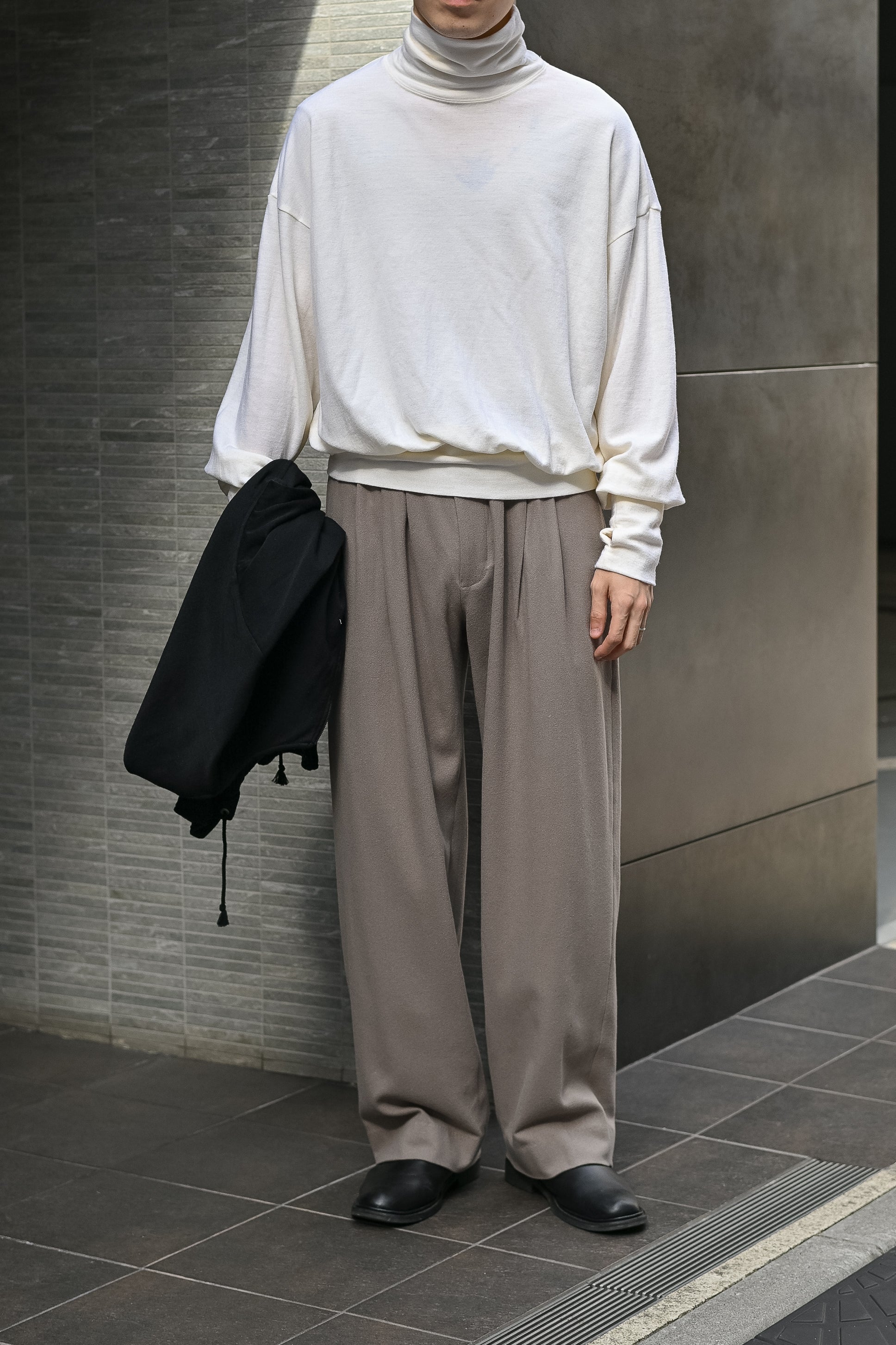 Afiit / 3TUCK WIDE EASY SLACKS -BEIGE