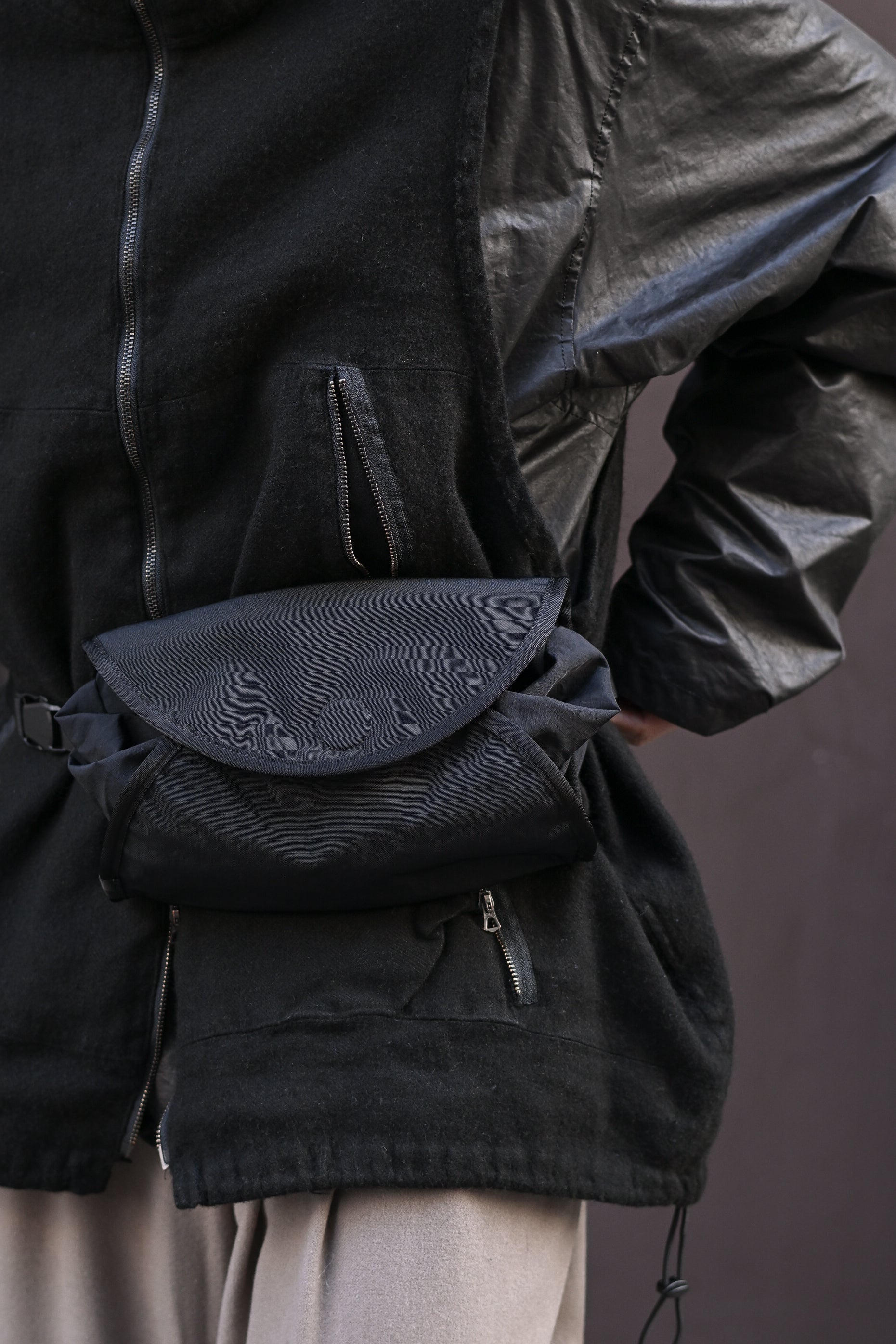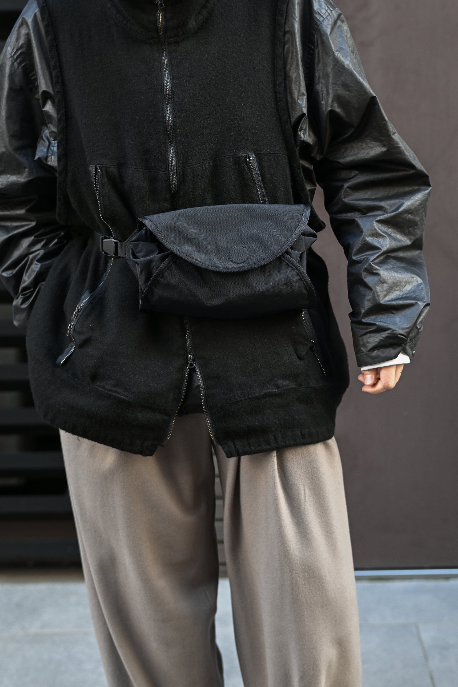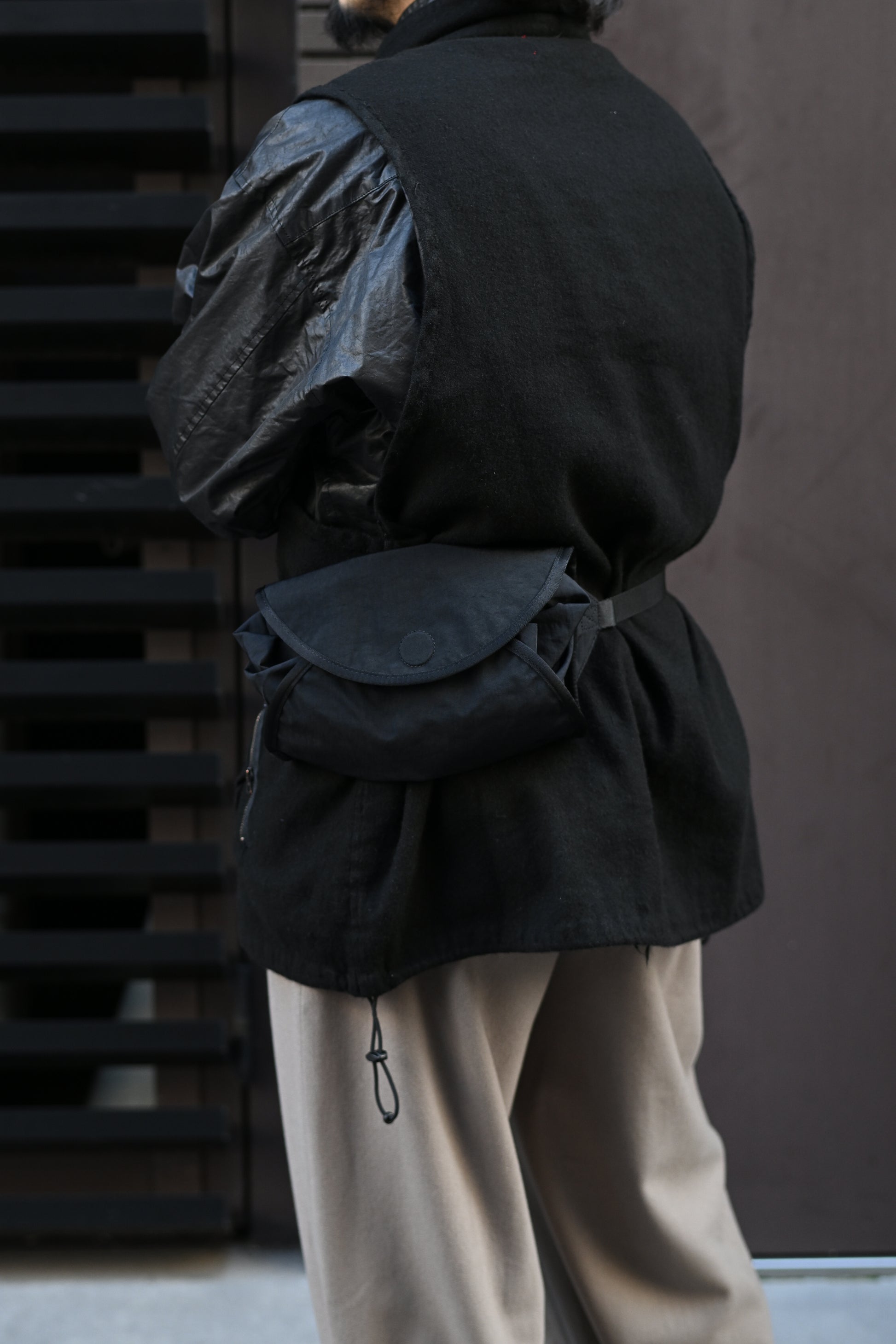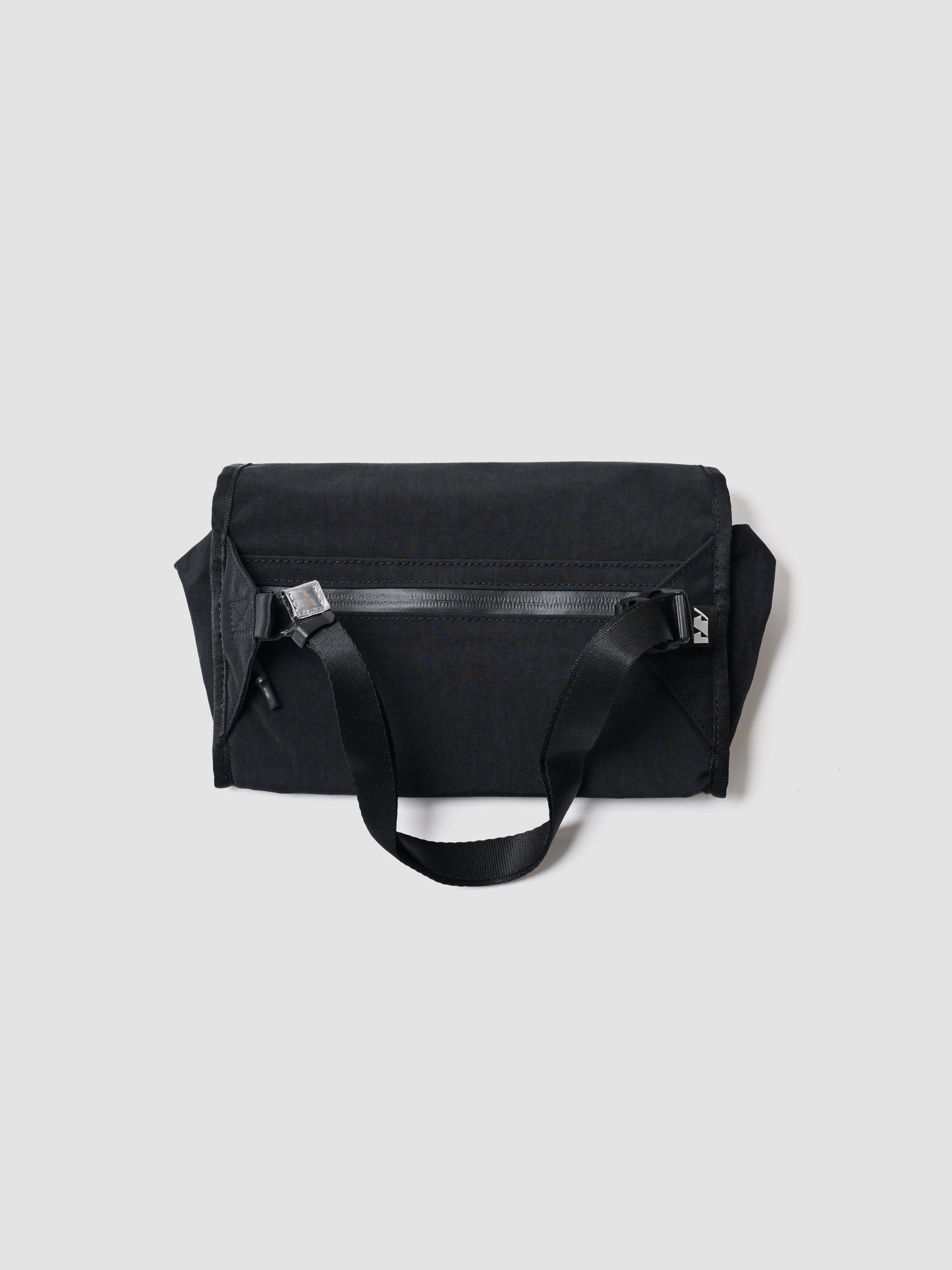 巻くをコンセプトに設計されたウェストポーチ。収納するアイテムを包み込む。容量は2Lと500mlのペットボトルを収納しても余裕があるサイズで、インナーには小物を収納するためのメッシュポケットを配置。アウターポケットはスマートフォンを収納できるサイズでキーホルダーが付属しています。テープ末端のリフレクターテープもポイントになっています。