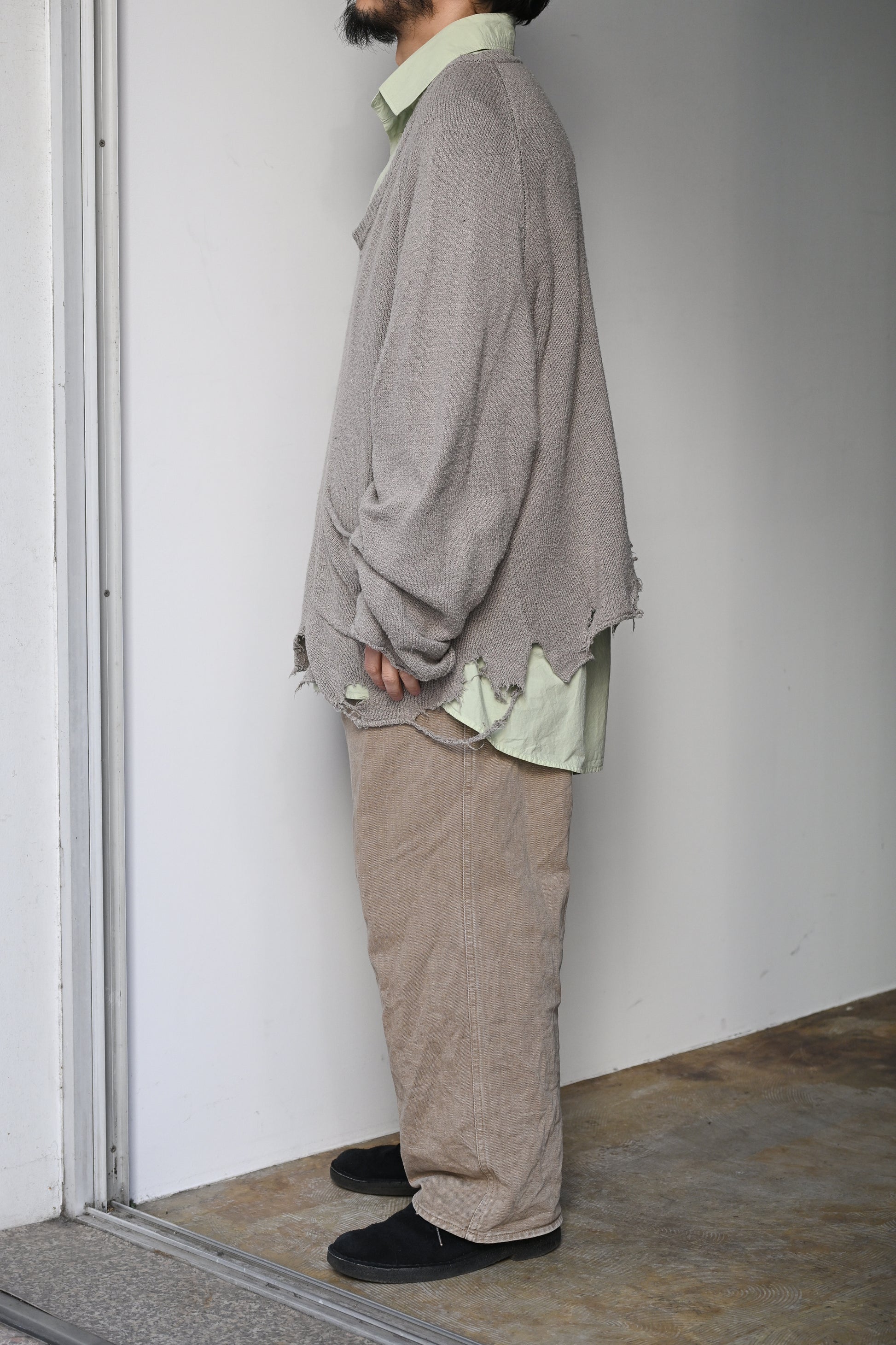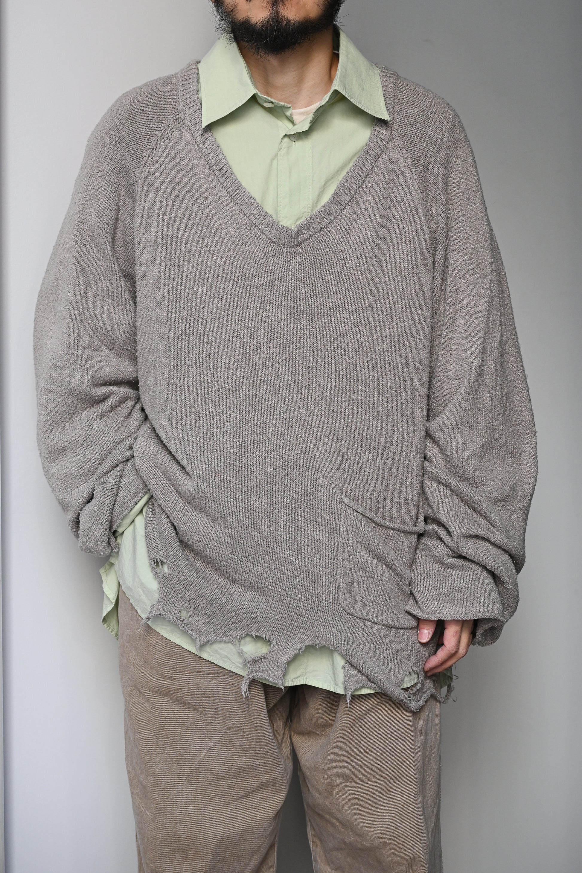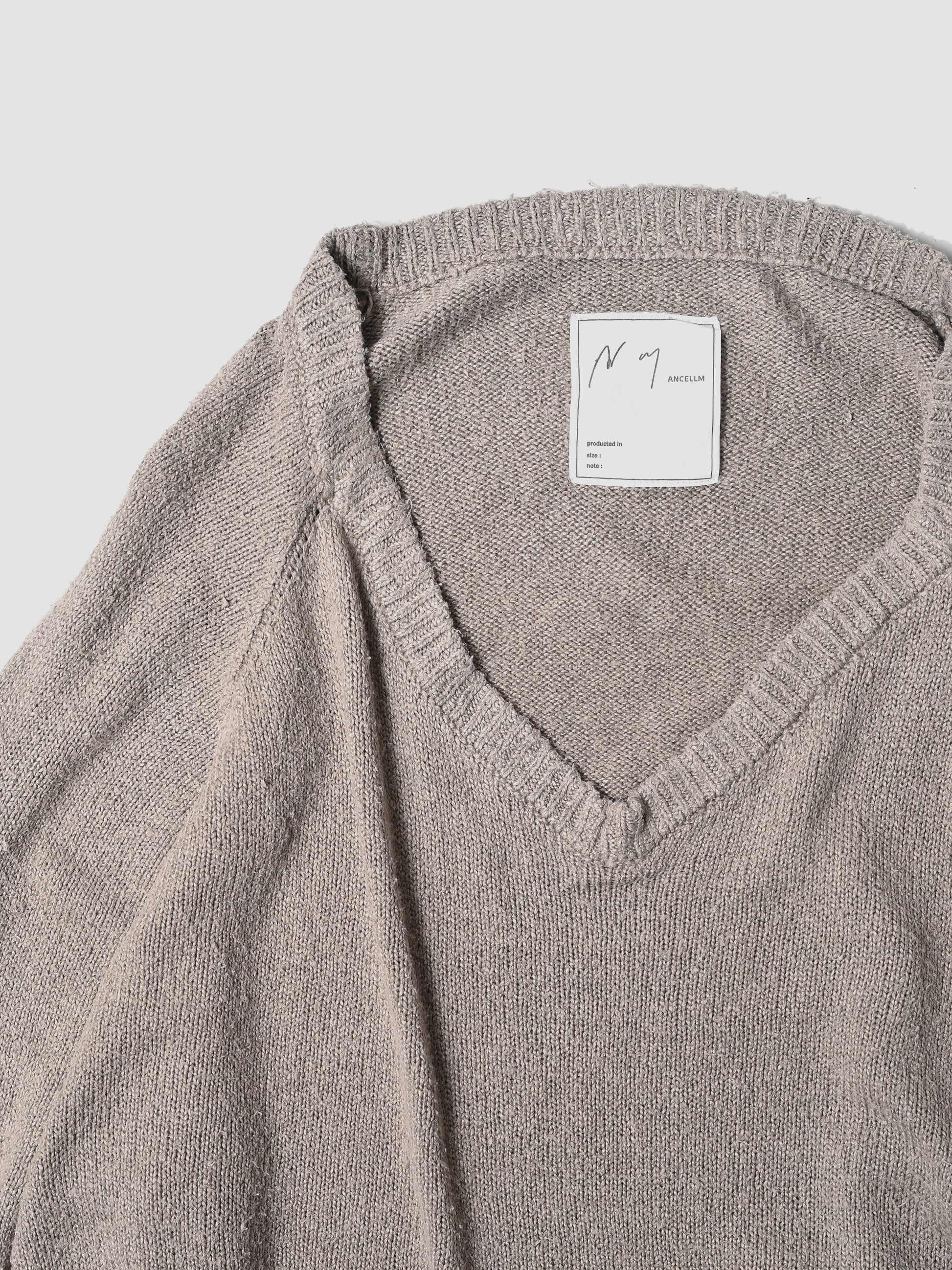 ANCELLM / DAMAGE SILK UVNECK KNIT -GREIGE