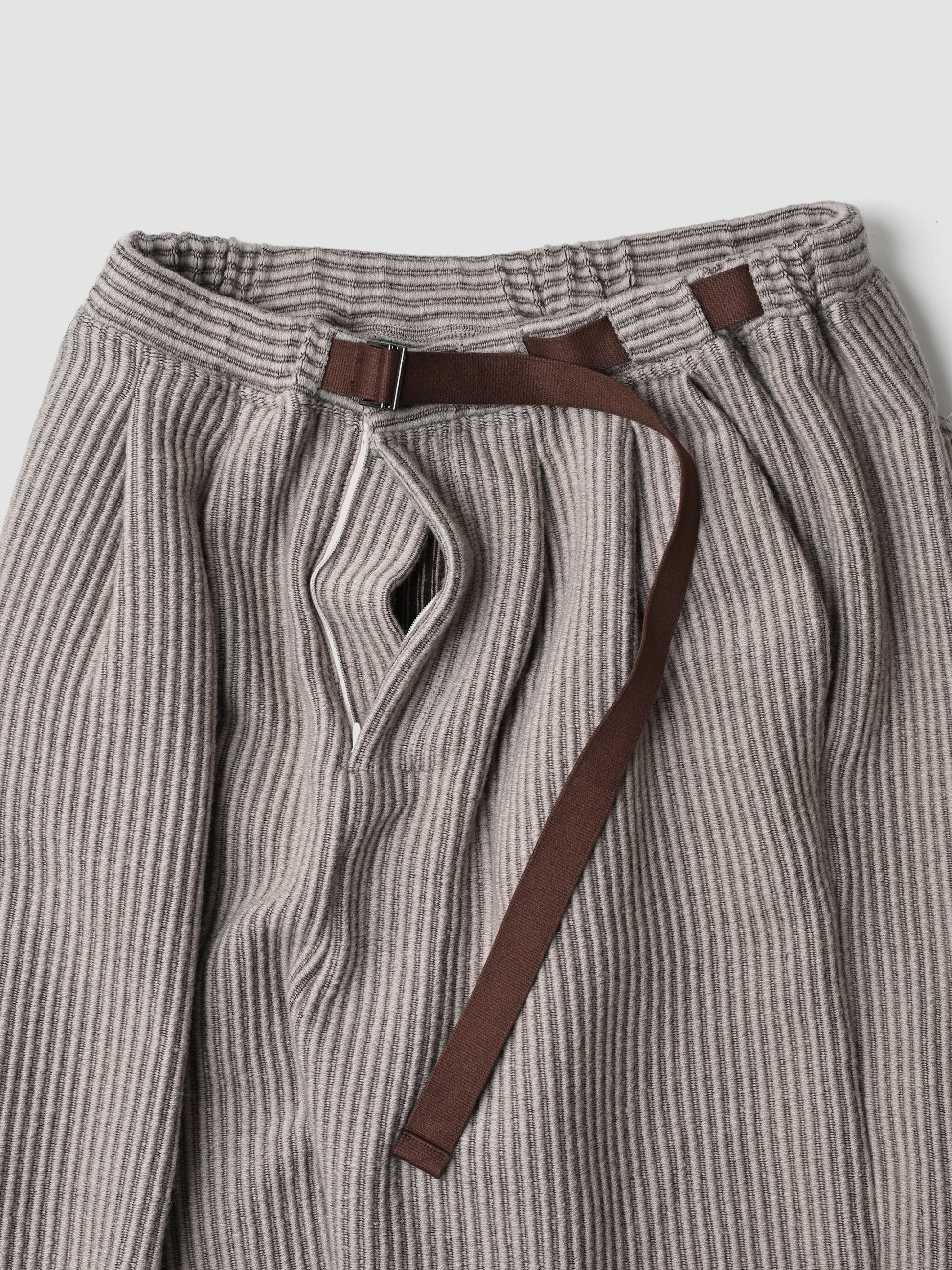 ANCELLM / WOOLCORD BELTLESS SLACKS -SAND