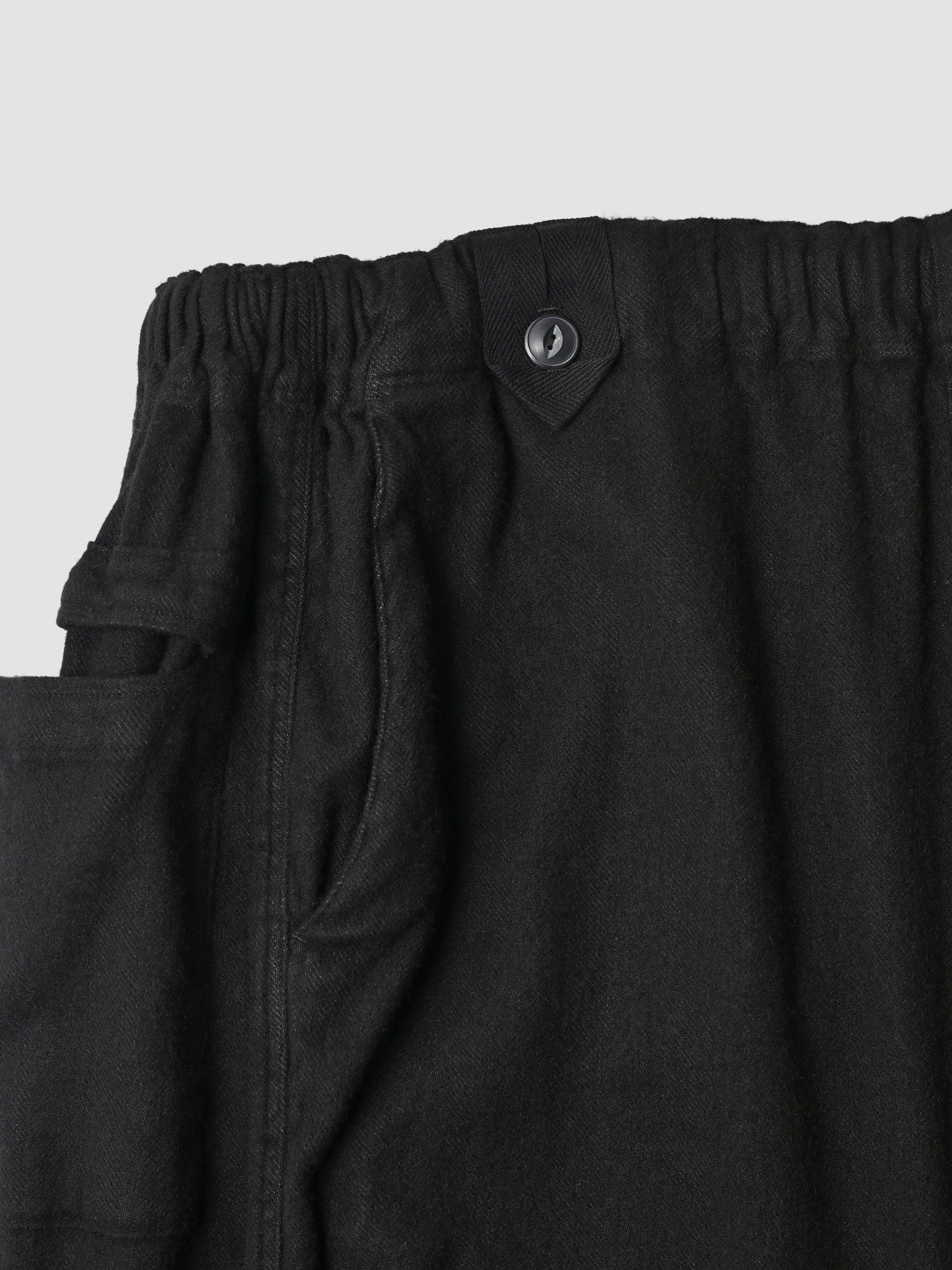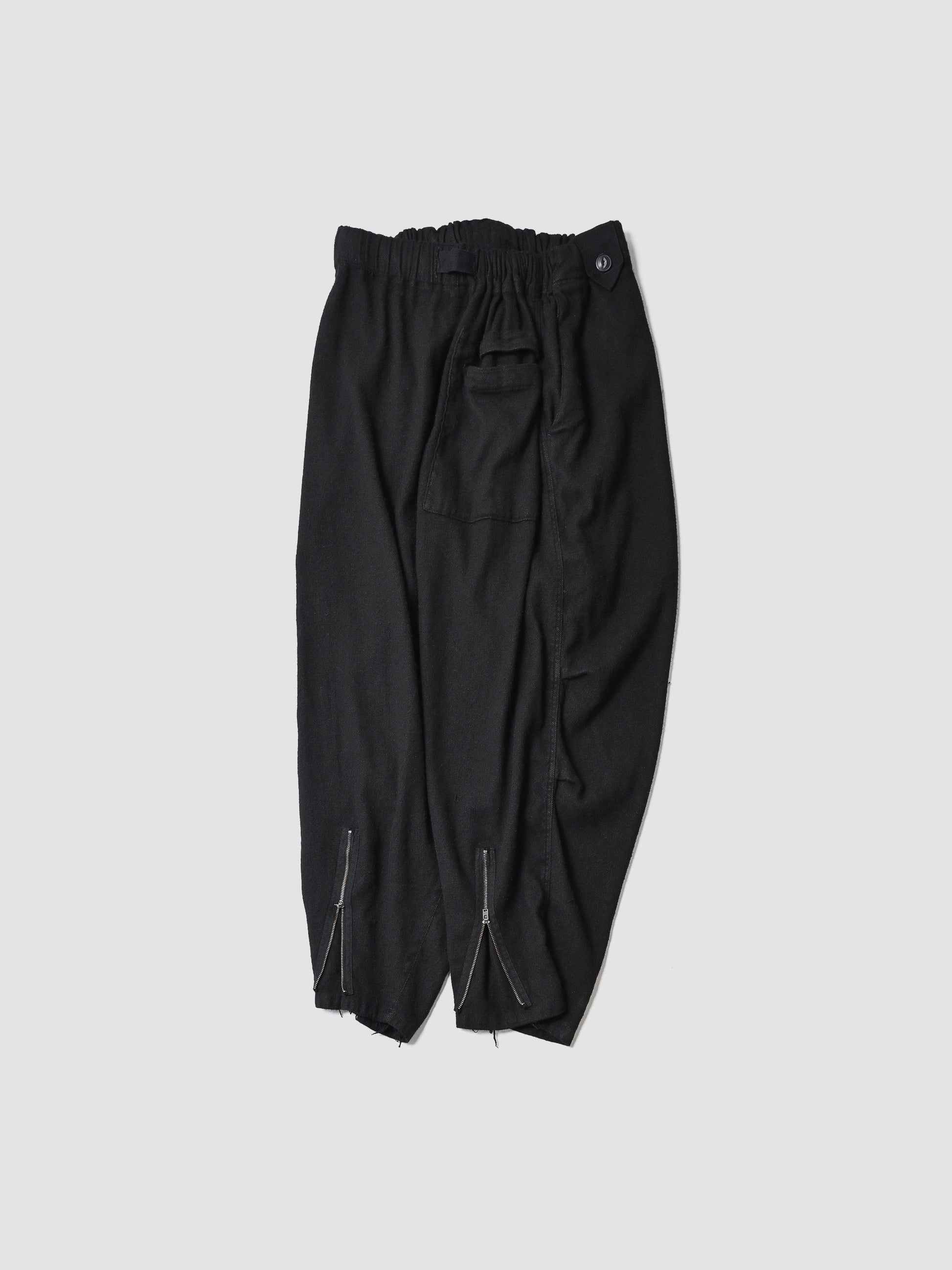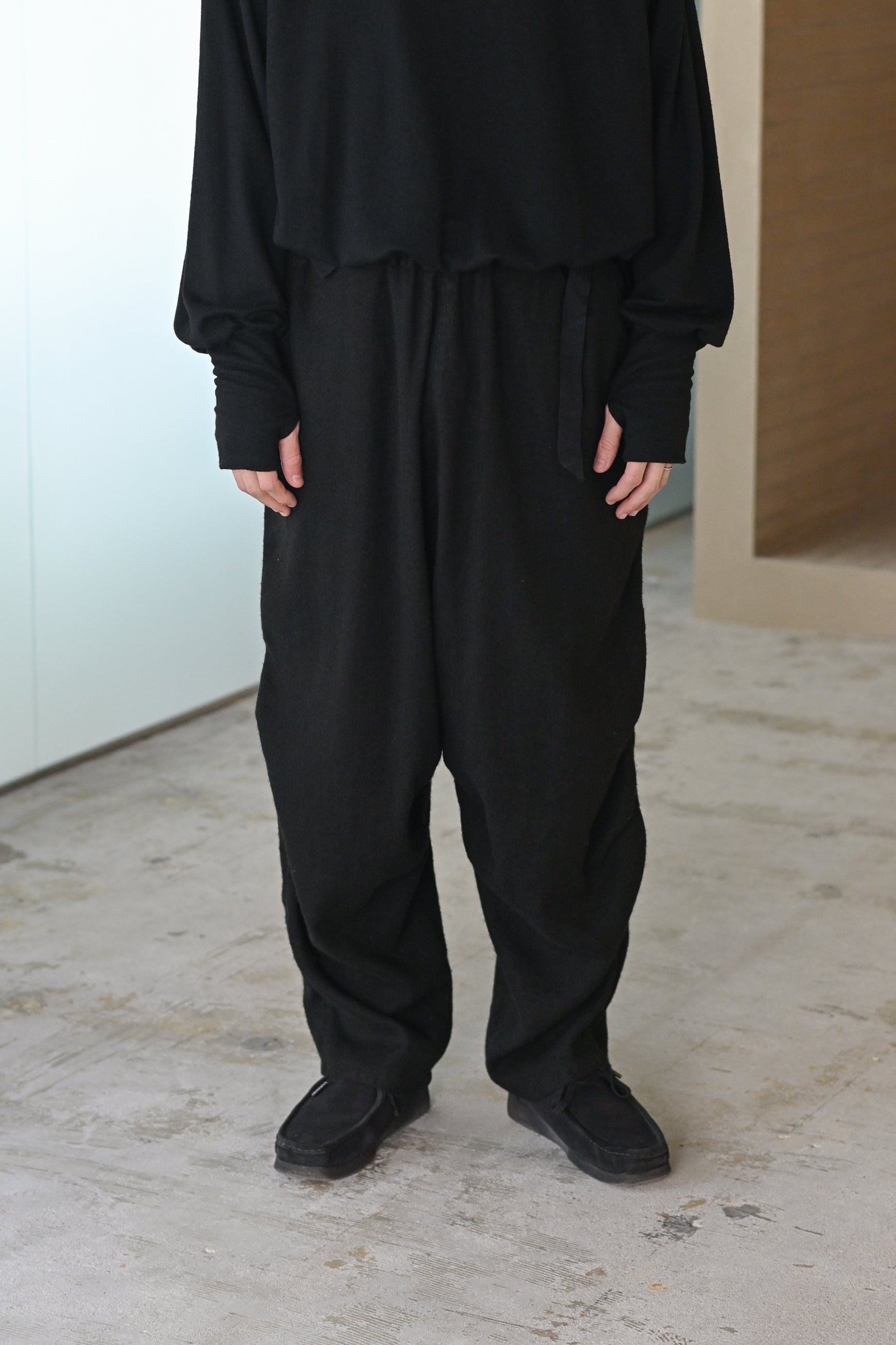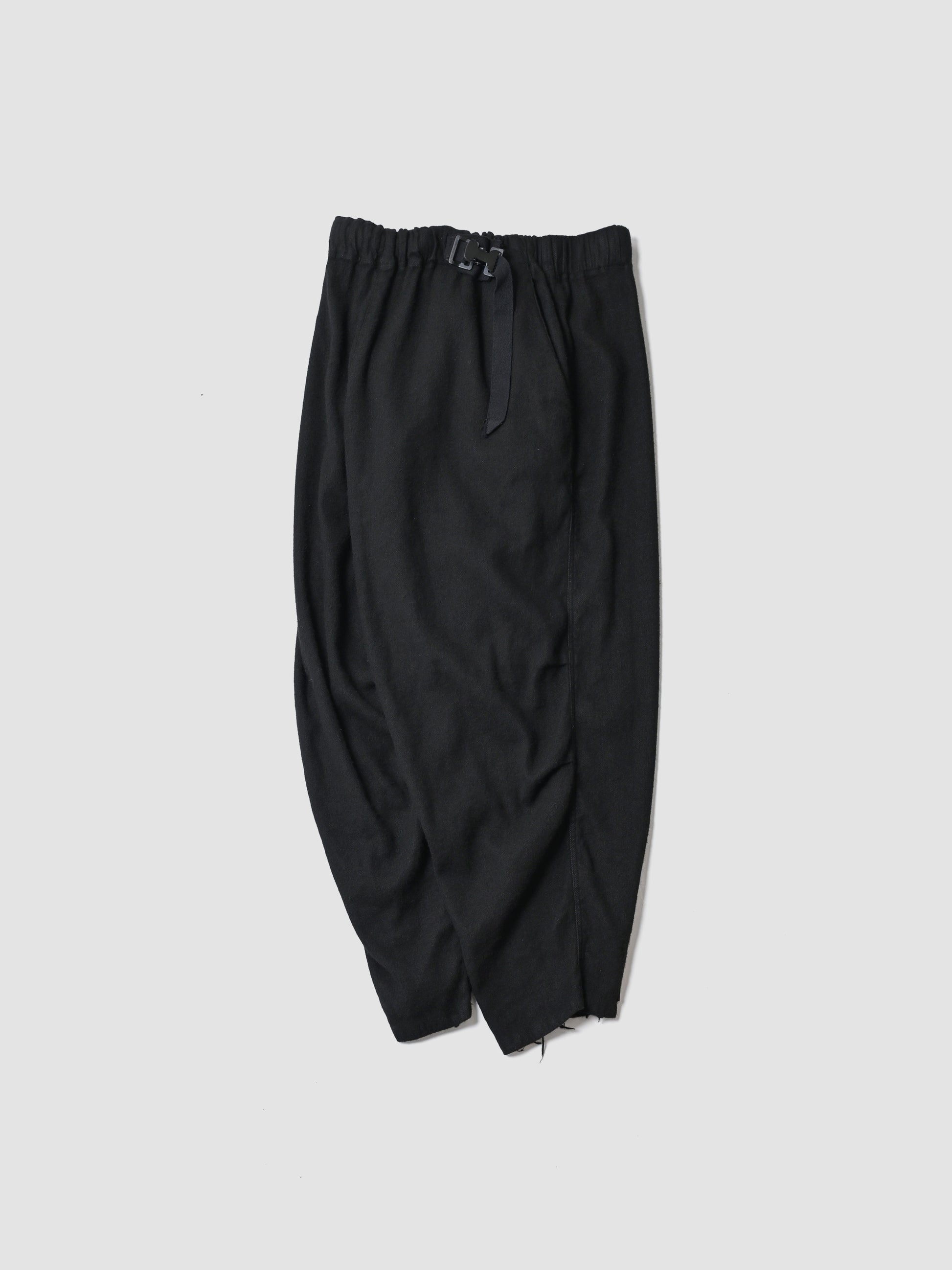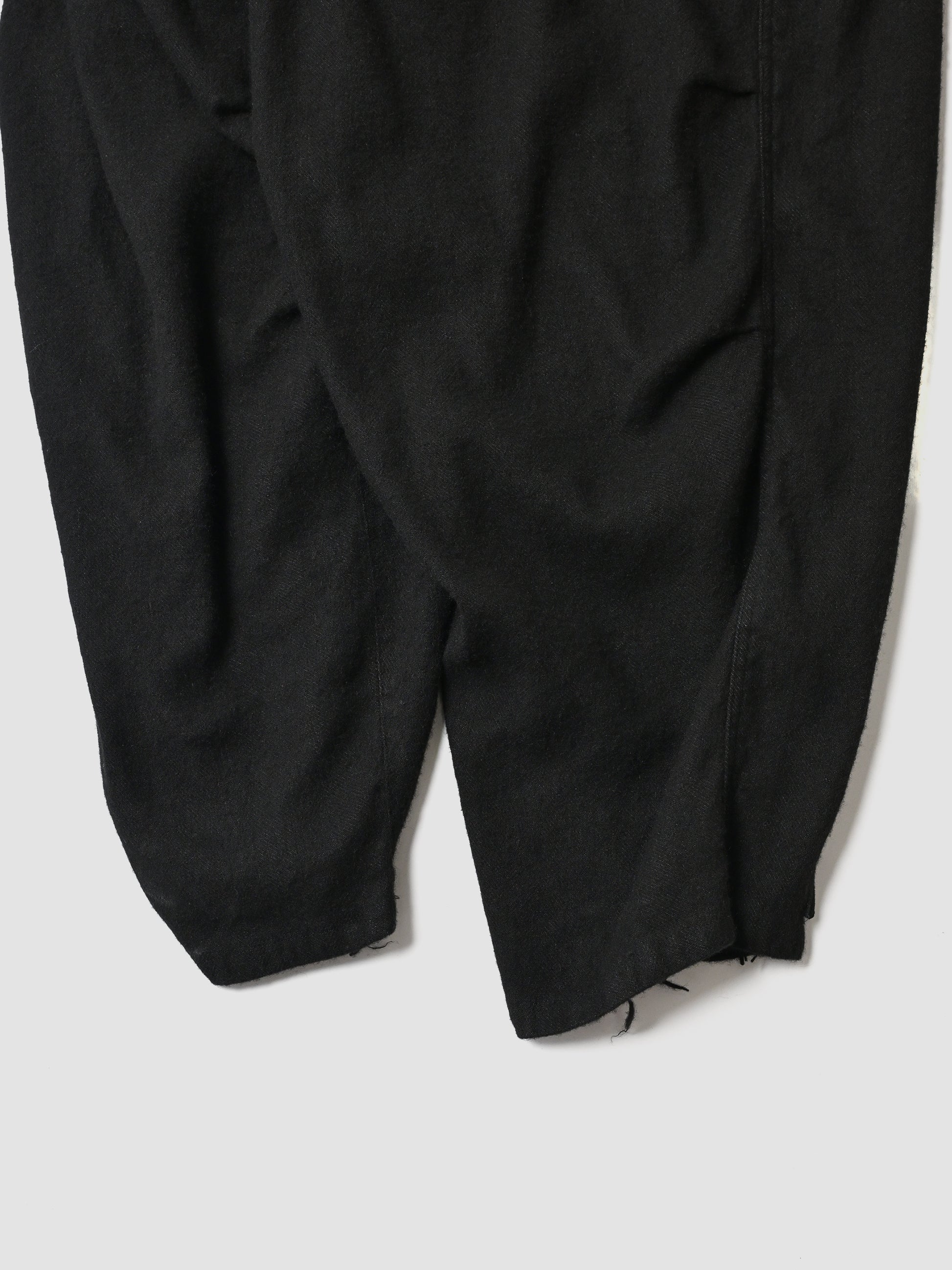 股上をたっぷり取った、裾にかけてきつめにテーパードを感じるサルエル。無愛想なシルエットにつくる事で、組成の印象とは裏腹に緊張感無いbo特異なプロダクトかと思います。きっとこれまでのどれよりも好き嫌いがはっきりするやつです。
