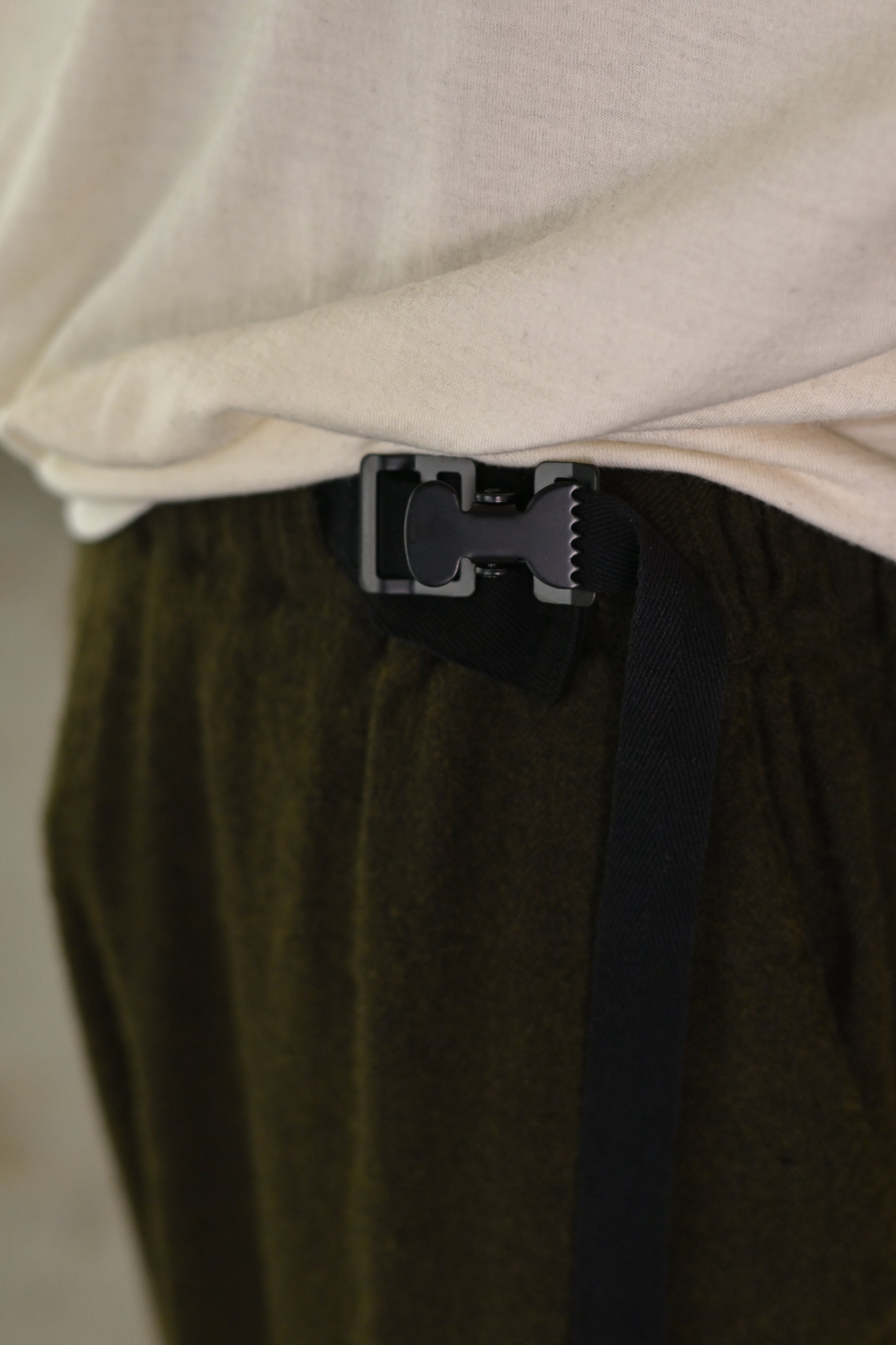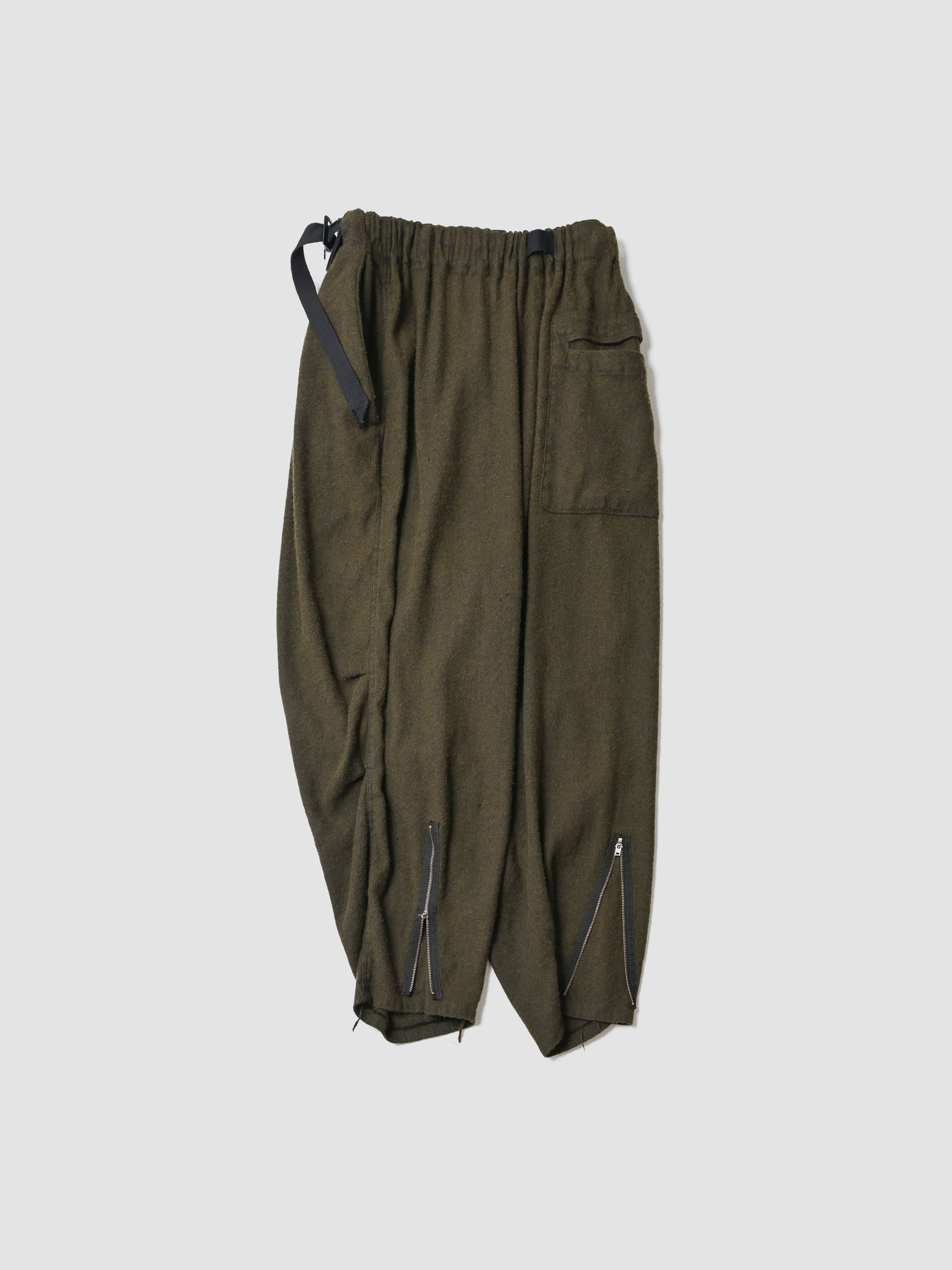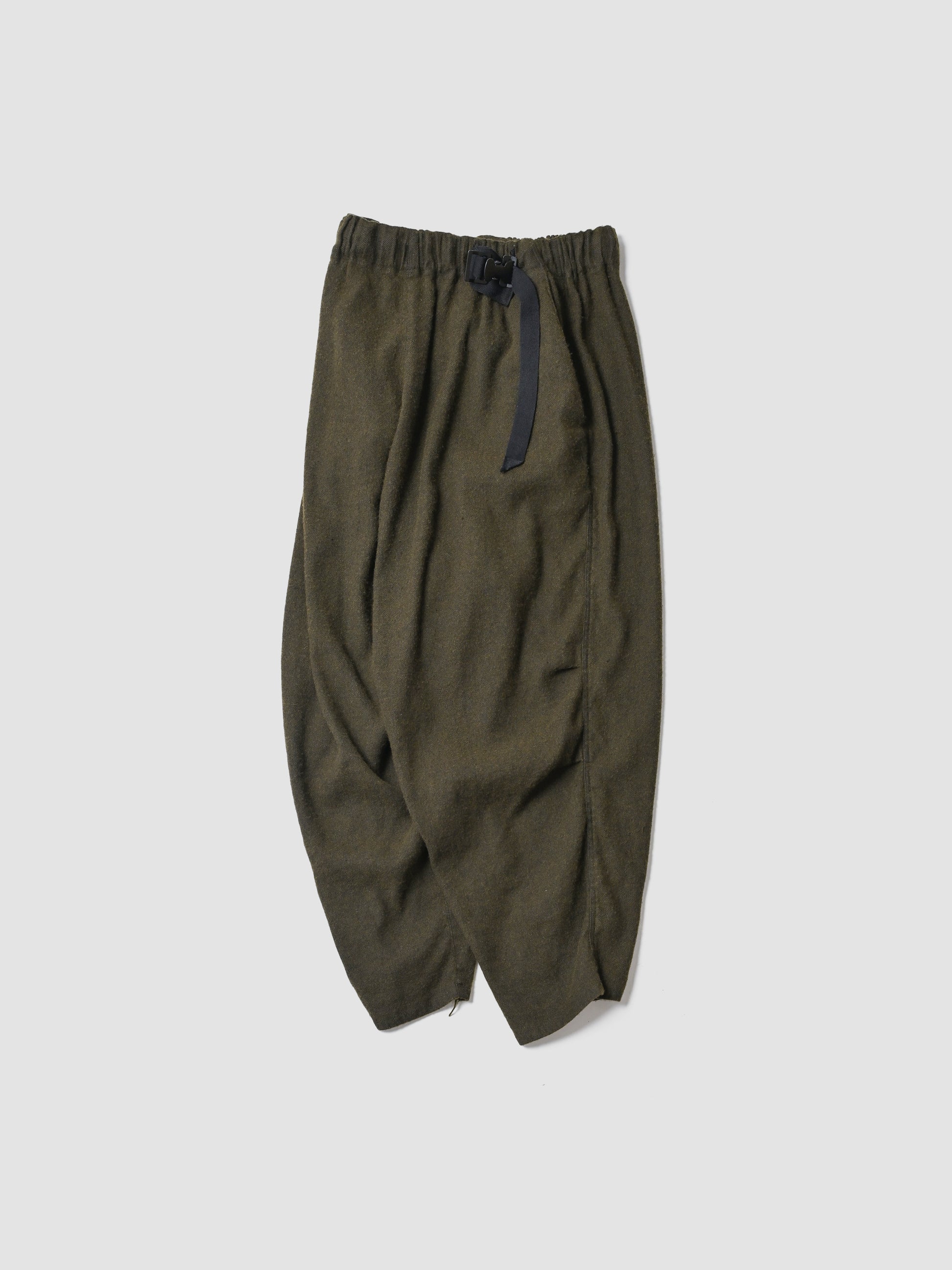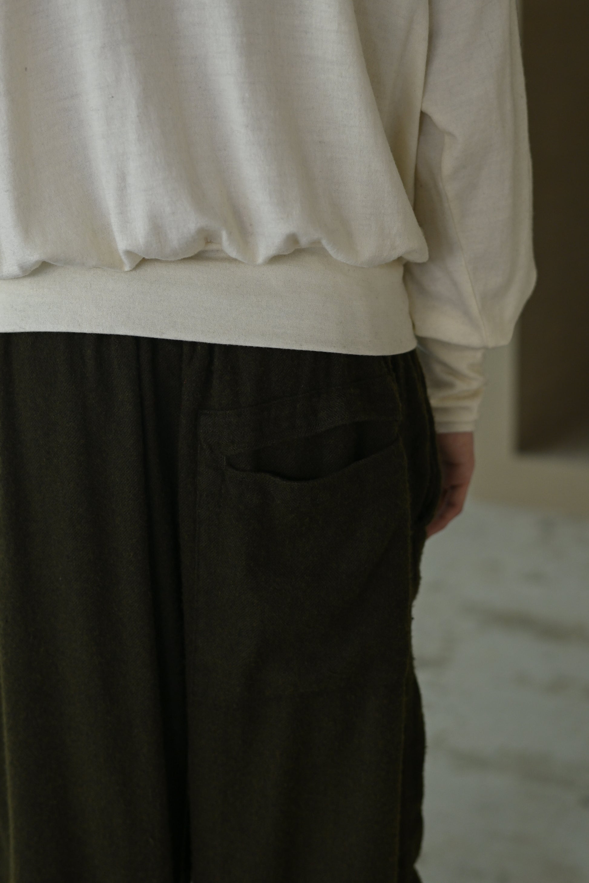 股上をたっぷり取った、裾にかけてきつめにテーパードを感じるサルエル。無愛想なシルエットにつくる事で、組成の印象とは裏腹に緊張感無いbo特異なプロダクトかと思います。きっとこれまでのどれよりも好き嫌いがはっきりするやつです。