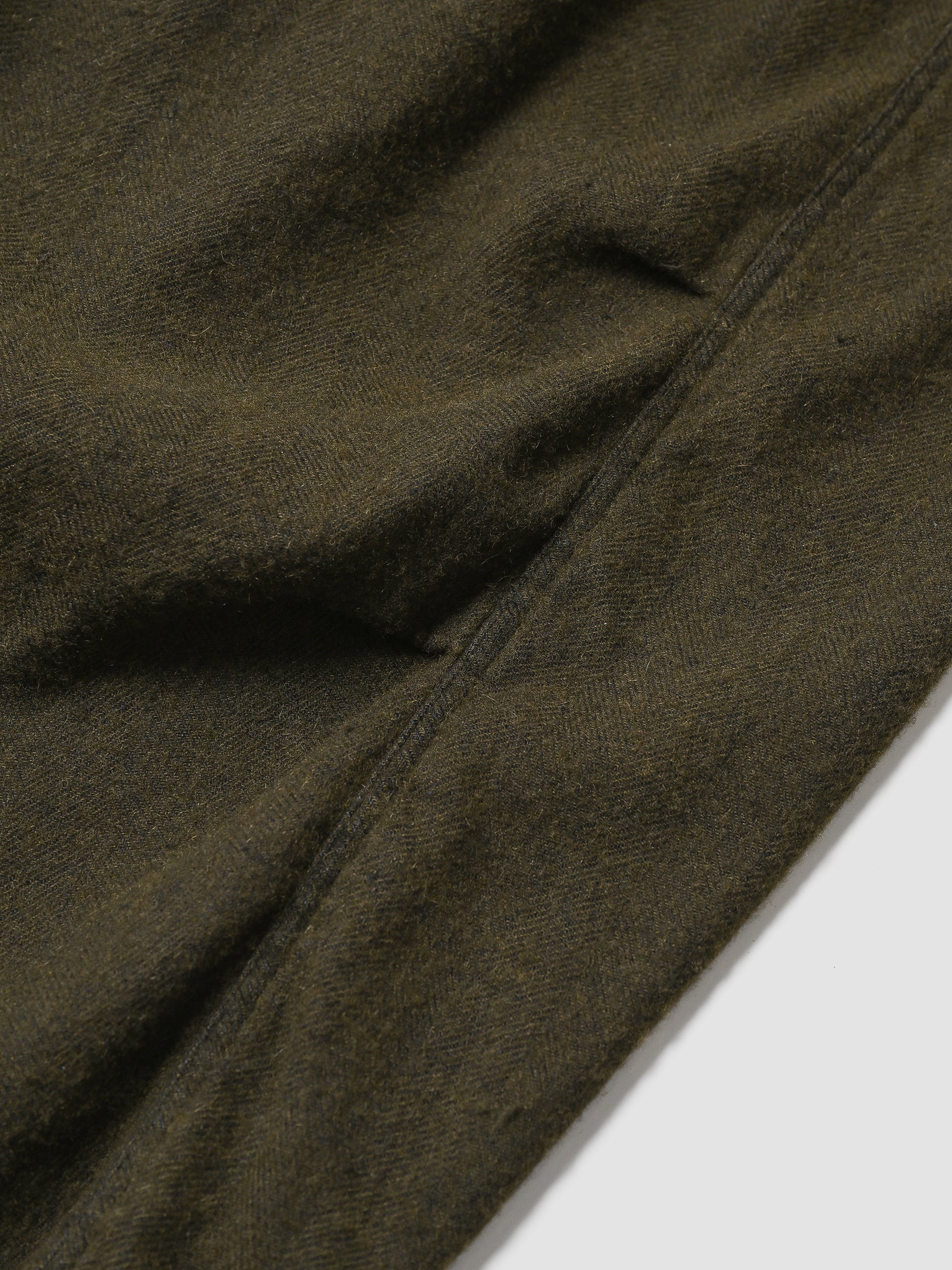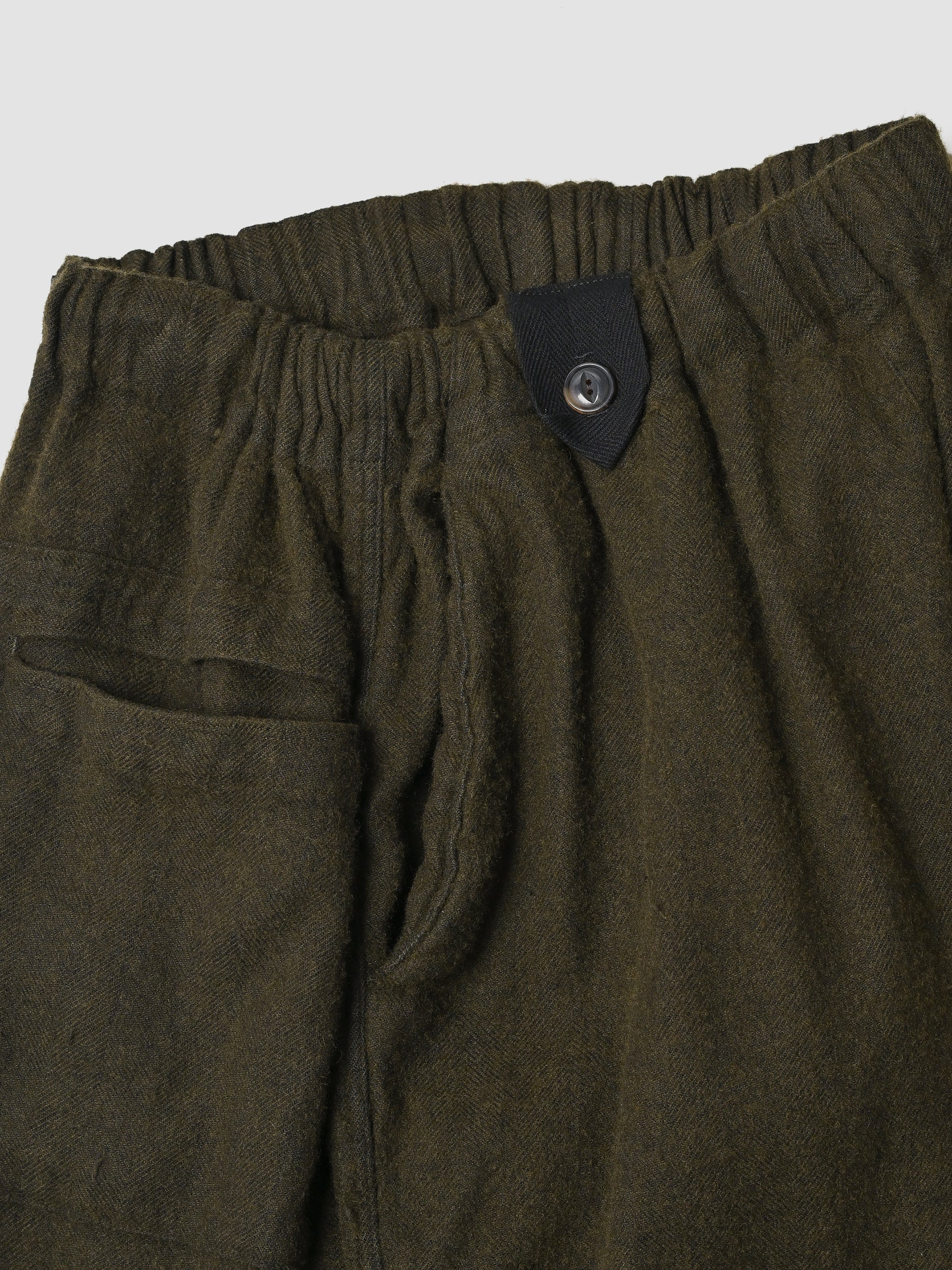 flowerとの名を冠した3型は加工B品が出た際に使われるその言葉を用いて表現されたユーモラスなネーミングです。その為、ご察しの通り世間的にB品とする環境を意図的に狙って製作するという裏をかくようなプロダクト。一見は起毛のように見えますが、履きこむ毎に無数の毛玉やカシミヤが噴き出してくるその先や、タッチの良さも楽しい藻を張ったような素材。両色製品染めですが、違いもありまして、mossは反応染料を黒でセットした際に出る黄緑方向の汚染である為、たて糸のリネンは黒に染まり、カシミヤは黄緑に。blackは予め、カシミヤを先染めの黒糸でセットし、染める事でそのままを作り出しています。狙ってのみ製品として成立する引き出しの豊富さと、その背景としてぼんやりと察する幾度かの失敗。このプロダクトが世に出る事で救われる気持ちもありそうです。