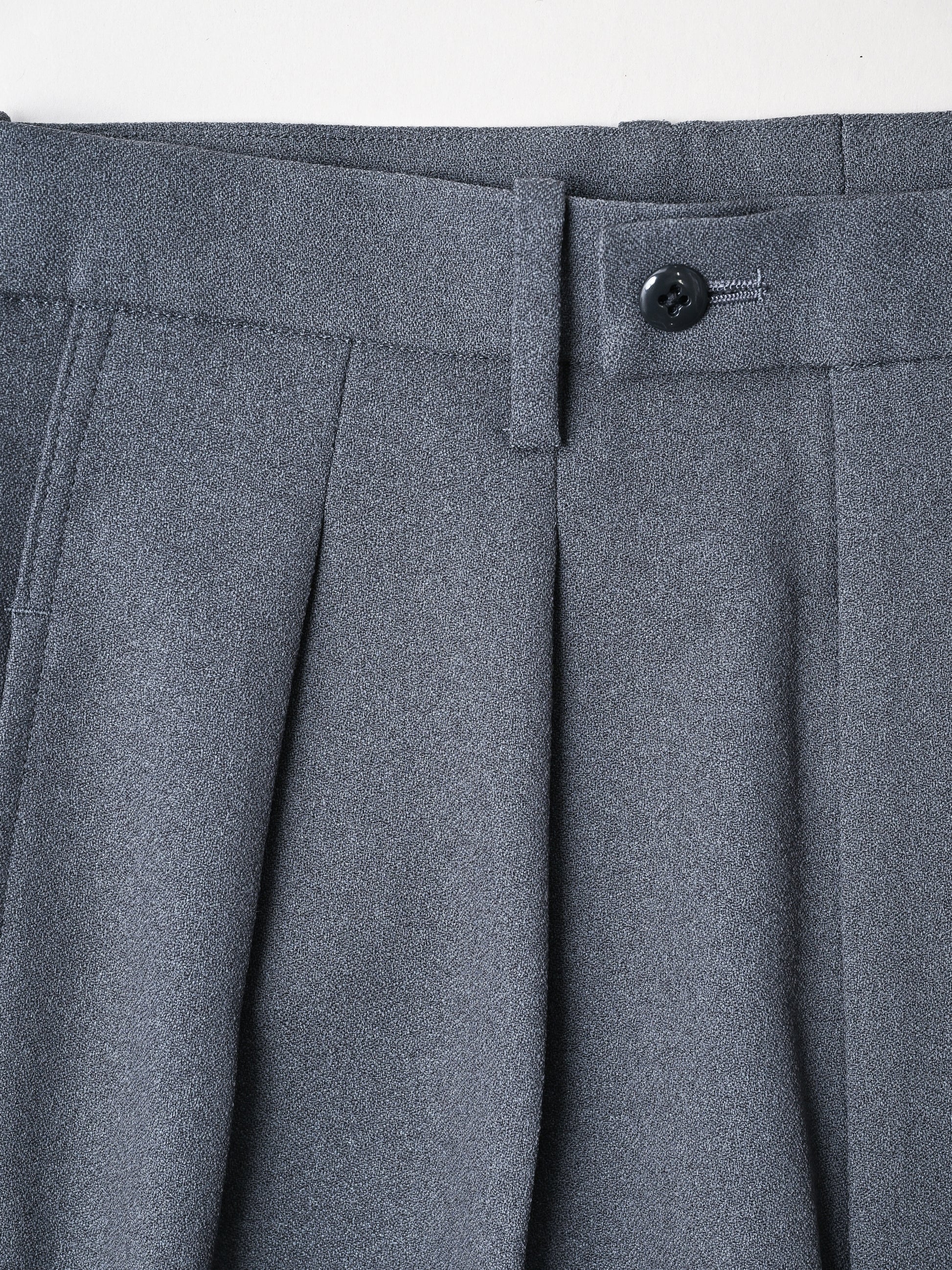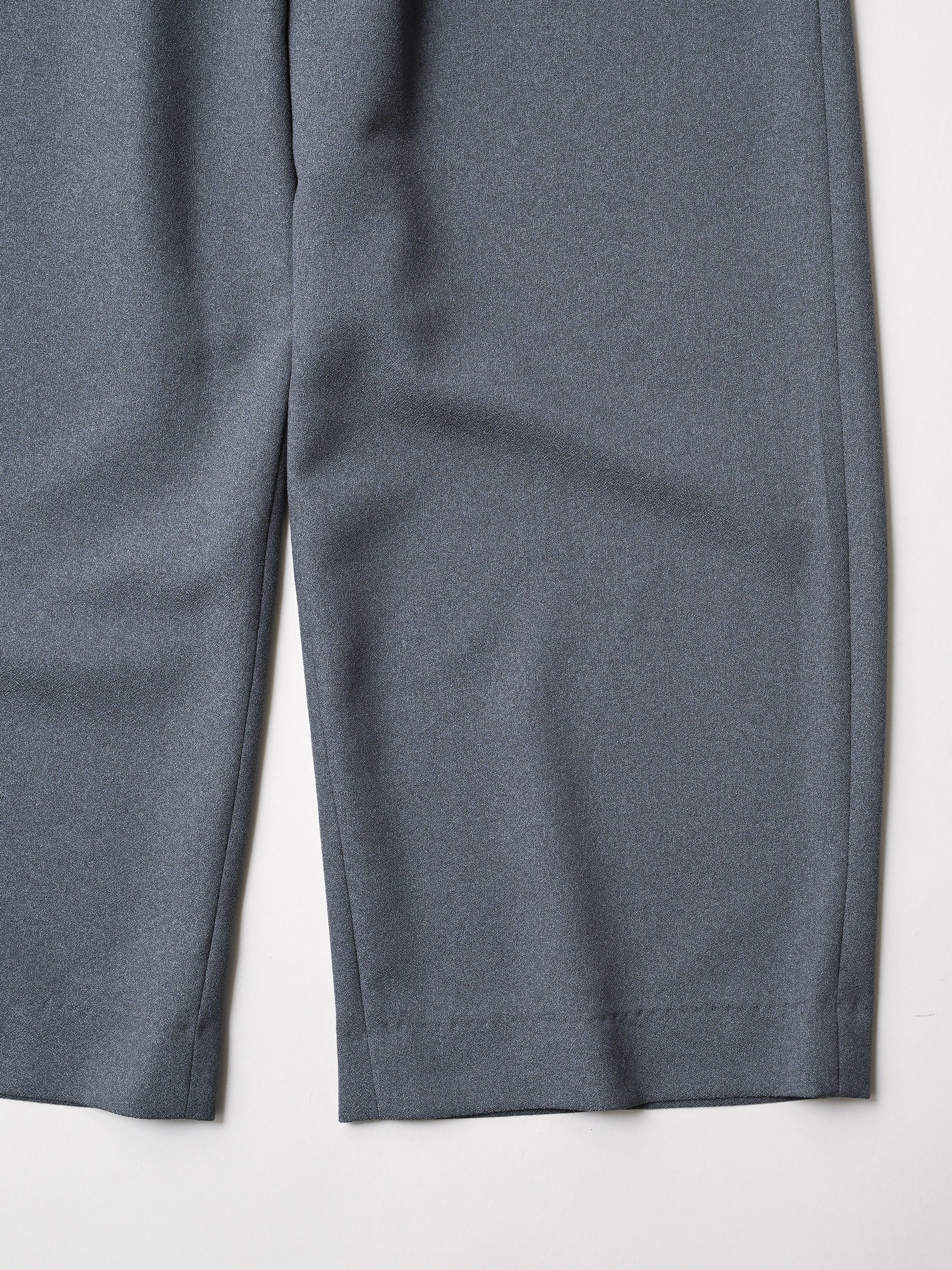 ポリエステル地の細かい凹凸感のあるアムンゼン織りです。表面のしぼにより肌への張りつきを防いでくれます。さらっとした清涼感もありますので今からでも何となく履けそうです。シルエットに関しては簡素な言葉以上になるかと思いますので、是非お試し頂き体感して頂くのがよろしいかと思います。必見です。