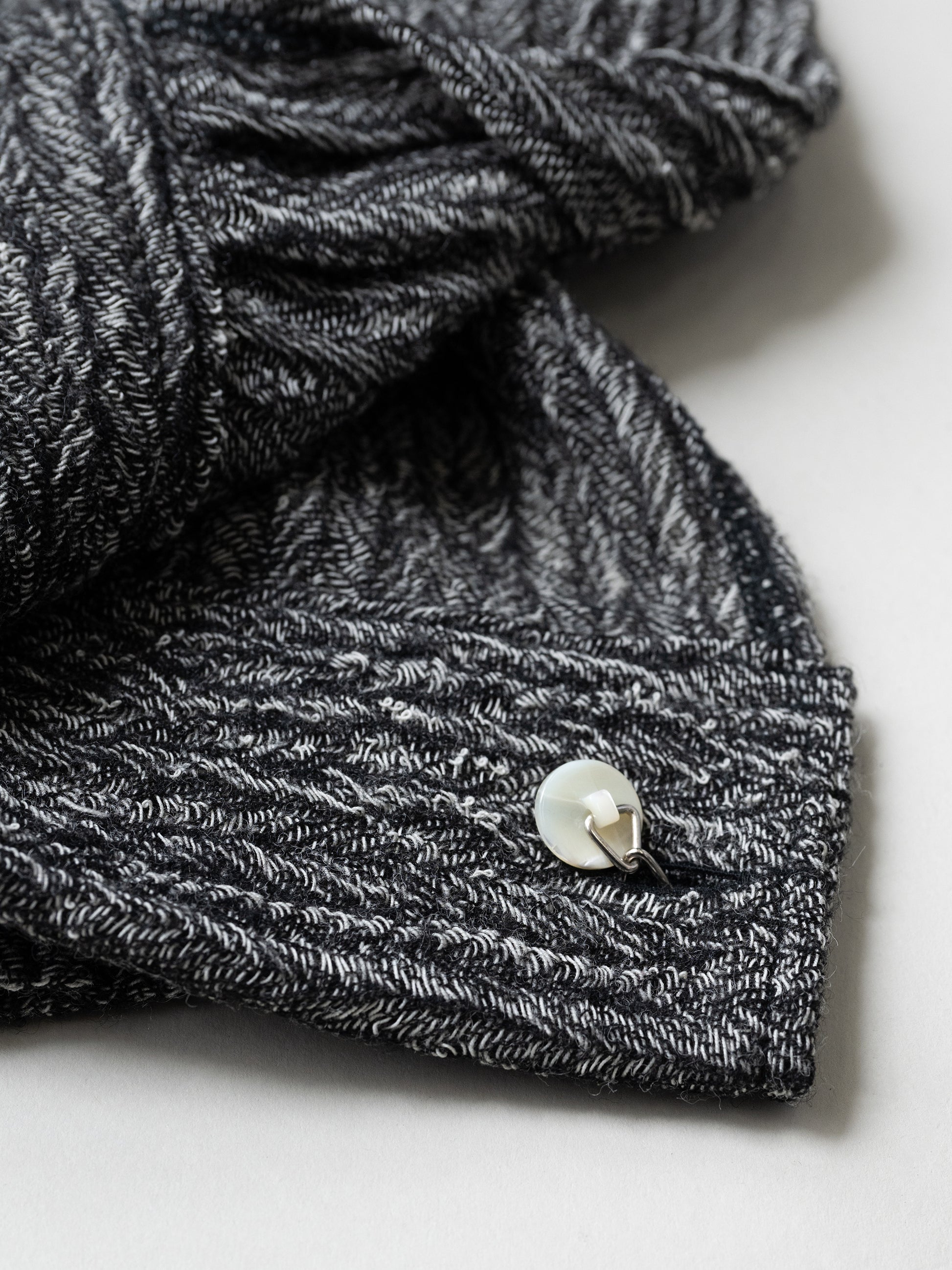 クラシックなjkで無くても、この秋冬何かの羽織のインナーとして見える胸元と袖口の違和感を想像してニヤリとバイインクしました。直近の話でいきますと、若干の透け感のある面白い素材なので、ショーツと合わせてのスタイリングも楽しいかと思います。メインでもサブでも活きそうです。