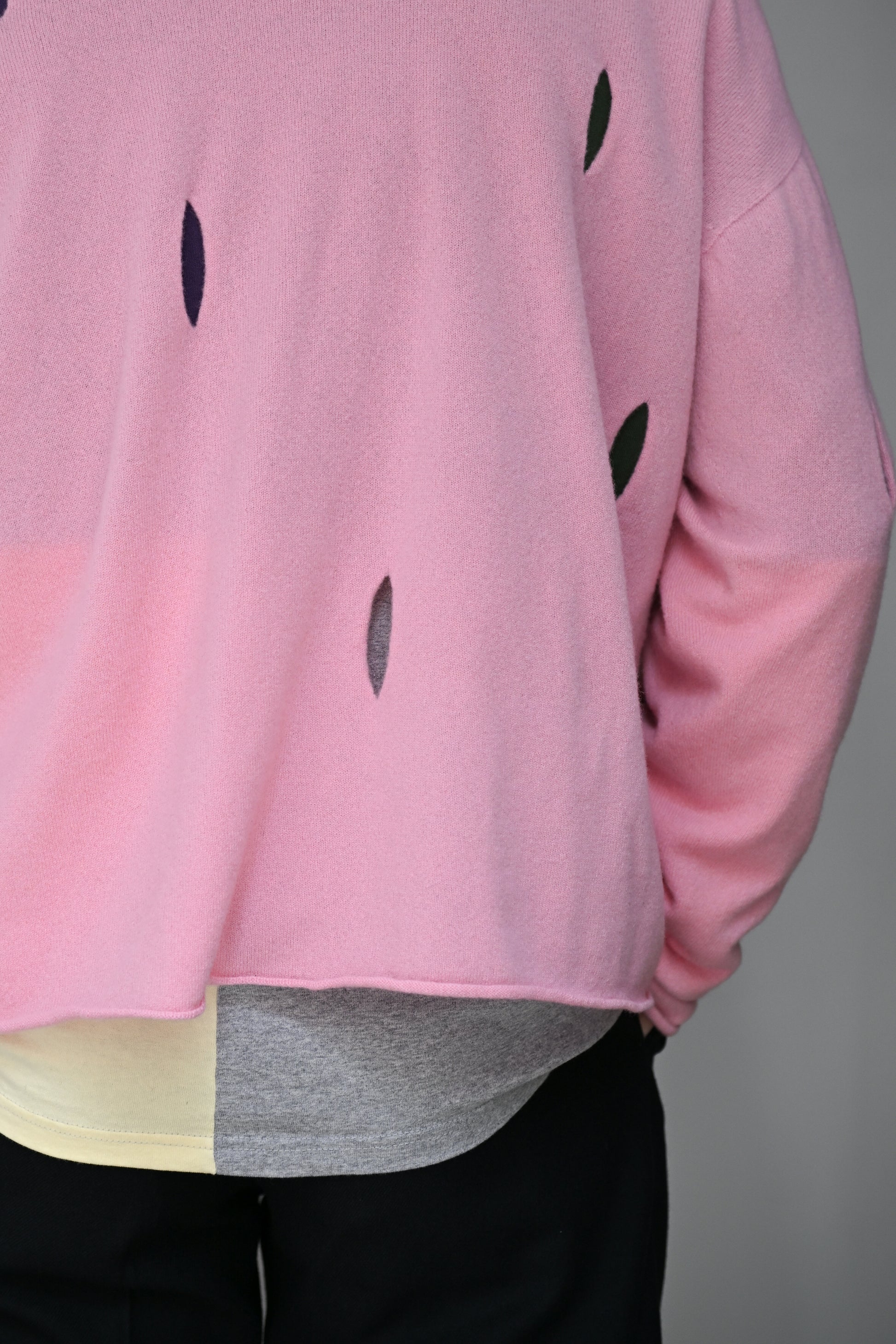 A MACHINE / Raw Edge Sweater in imitation of "Rudi Genreich-1966-Vinyl Mini Dress" -PINK