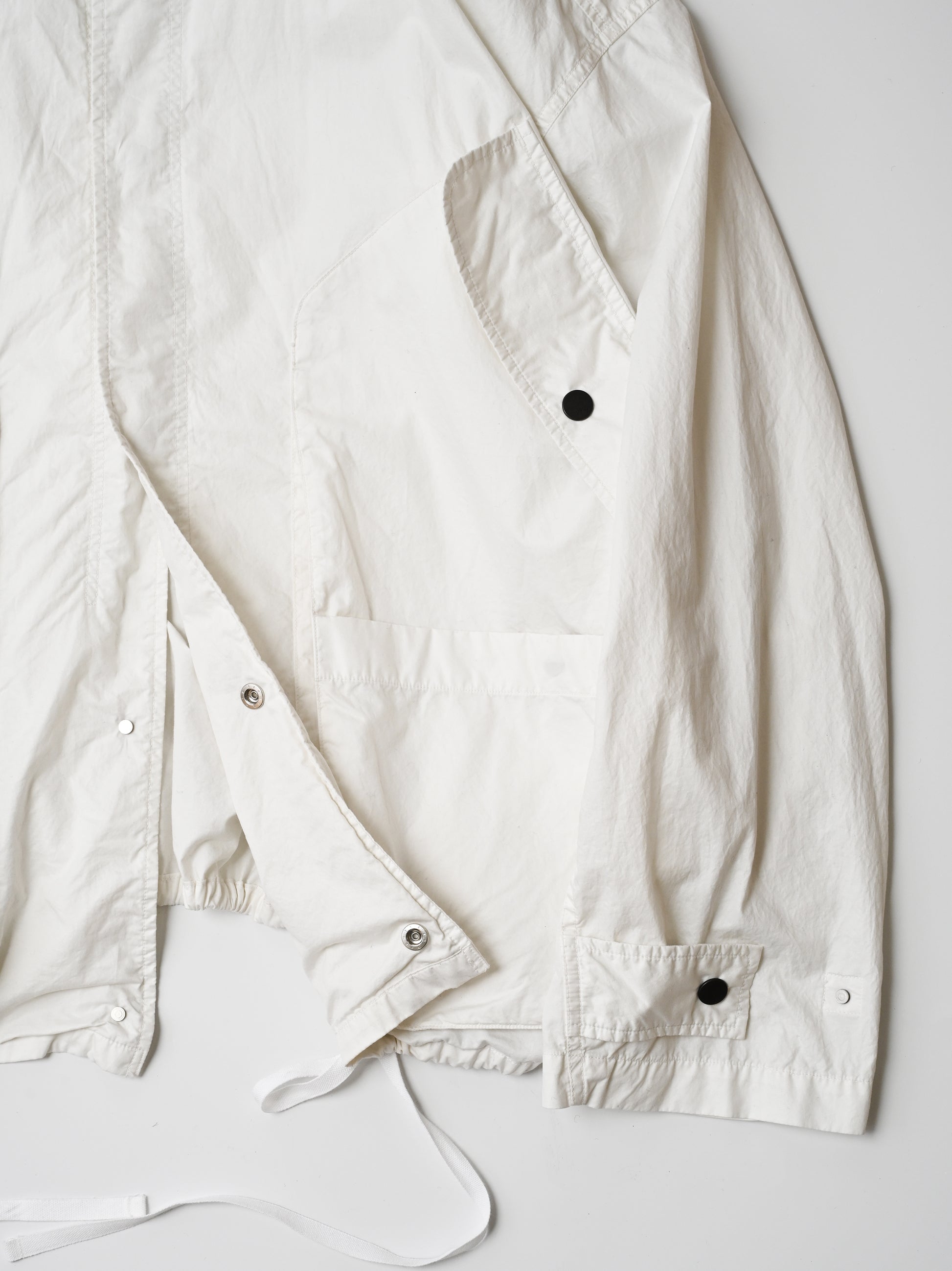 コットン100%のタイプライターのフィールドパーカー。さらにハイカウントならではのハリと艶が見えるこちらは他ナイロンのそれとは違い、縫製後の染めや洗いから出るパッカリング、各色毎にレイヤーで色を重ねた雰囲気は着古したような雰囲気に仕上がっています。様々な国のミリタリーのディティールを掛け合わせて構築されたバランスは流石の一言。