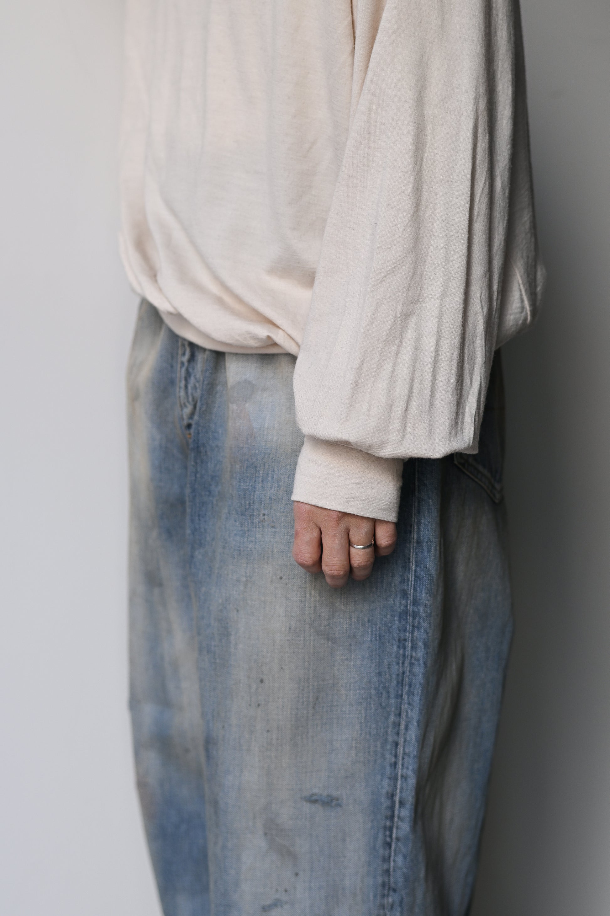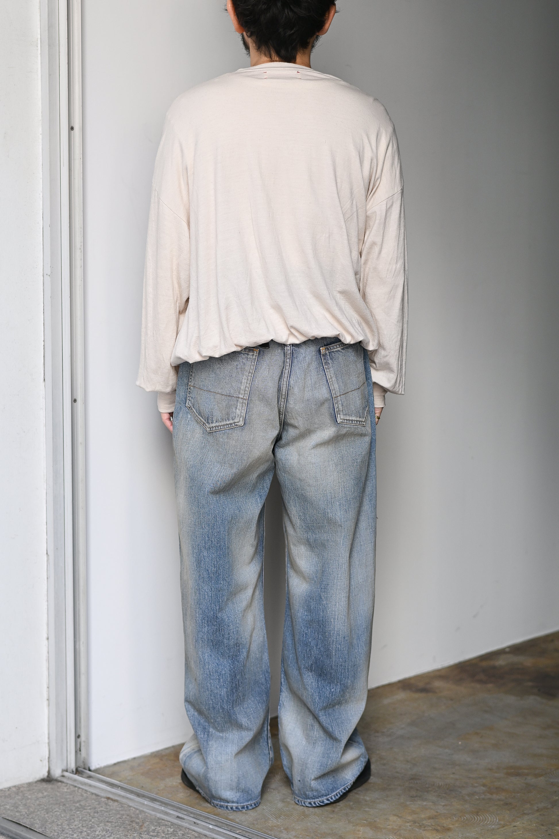 加工も他デニムと同様に熟練の職人さんたちの手作業から生まれ、ダメージはじめ、色を落としたベースカラーに対して淡色、中間色、濃色それぞれ足して色味のバランスを調整、さらにANCELLM独自の調合色をプラスと、時間と手間を要した一本は流石の雰囲気です。