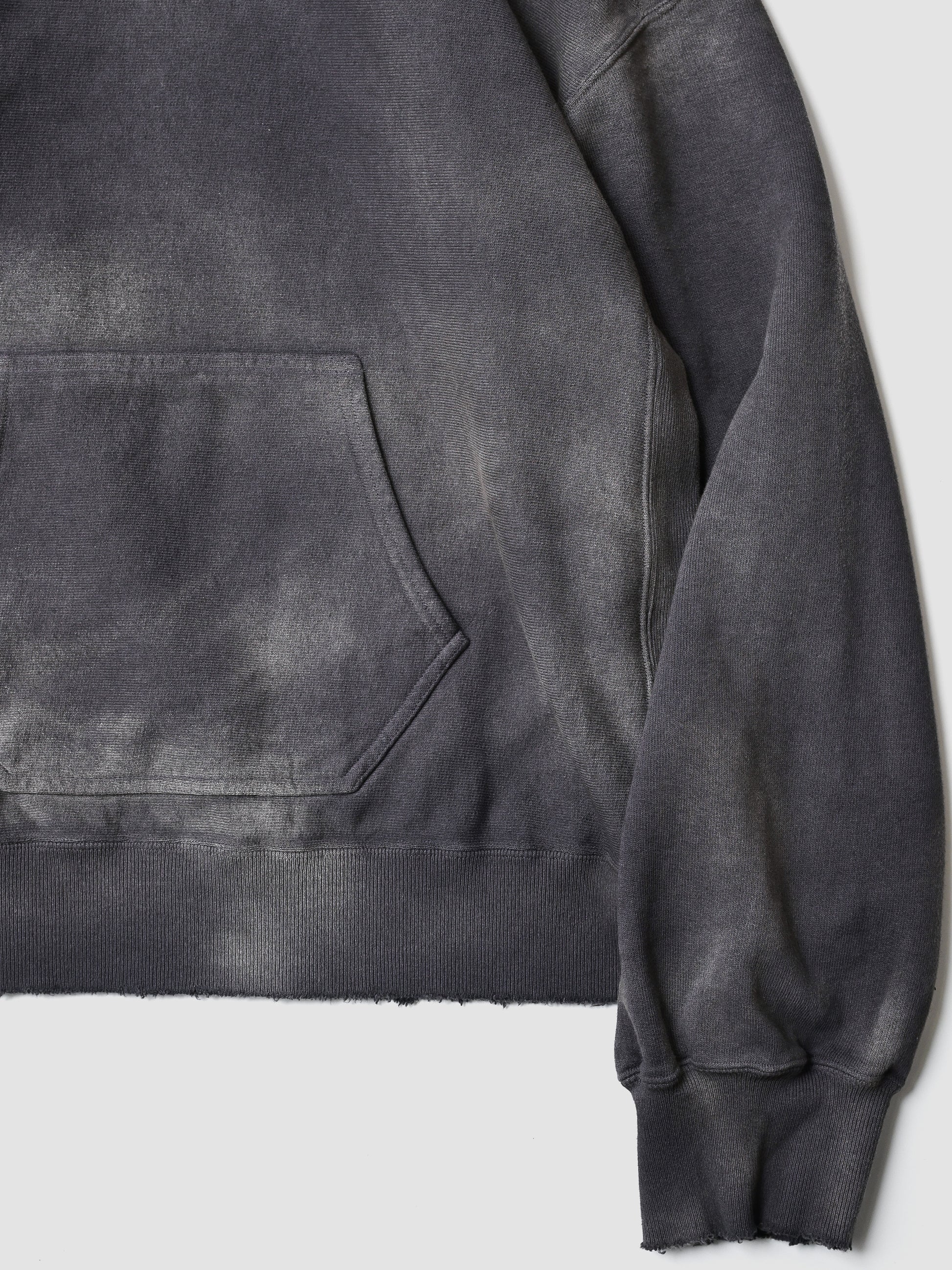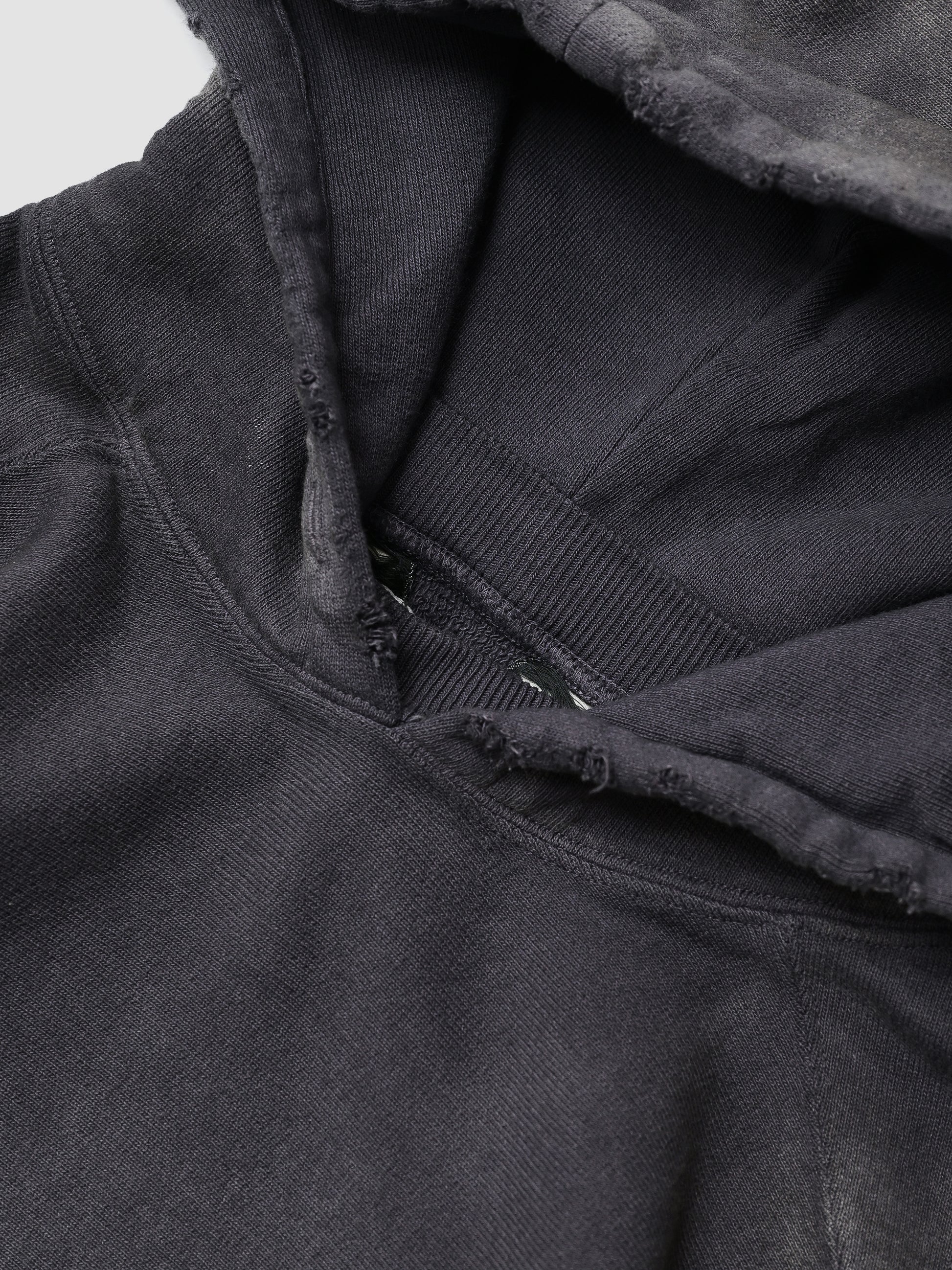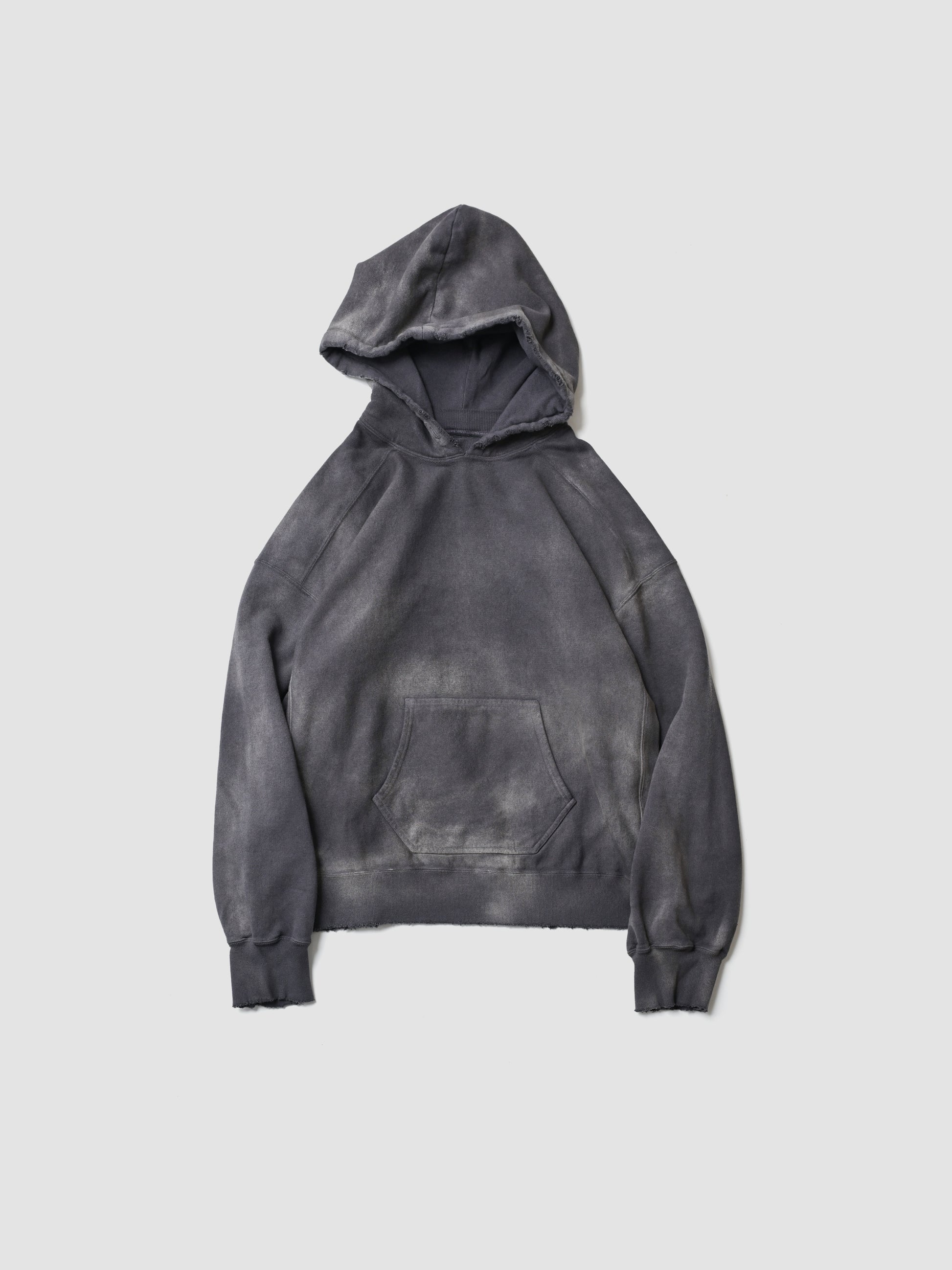 デニムと同じく定番のフーディーでありますが、今季のプロダクトにはそれを感じさせない独自の染色技法と加工から生み出したグラデーションの美しさがあります。まるで水に広がるグラデーションのような仕上がりはランダムに現れる色彩の個性と一着たりとも同じものは作れない偶然的な必然。是非同色のアイテムとも合わせてみて下さい。より際立ち、浮かび上がると思います。