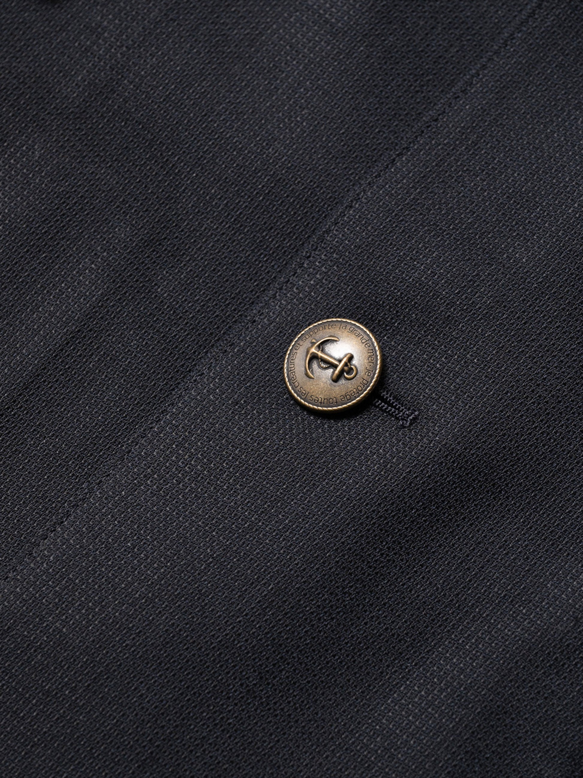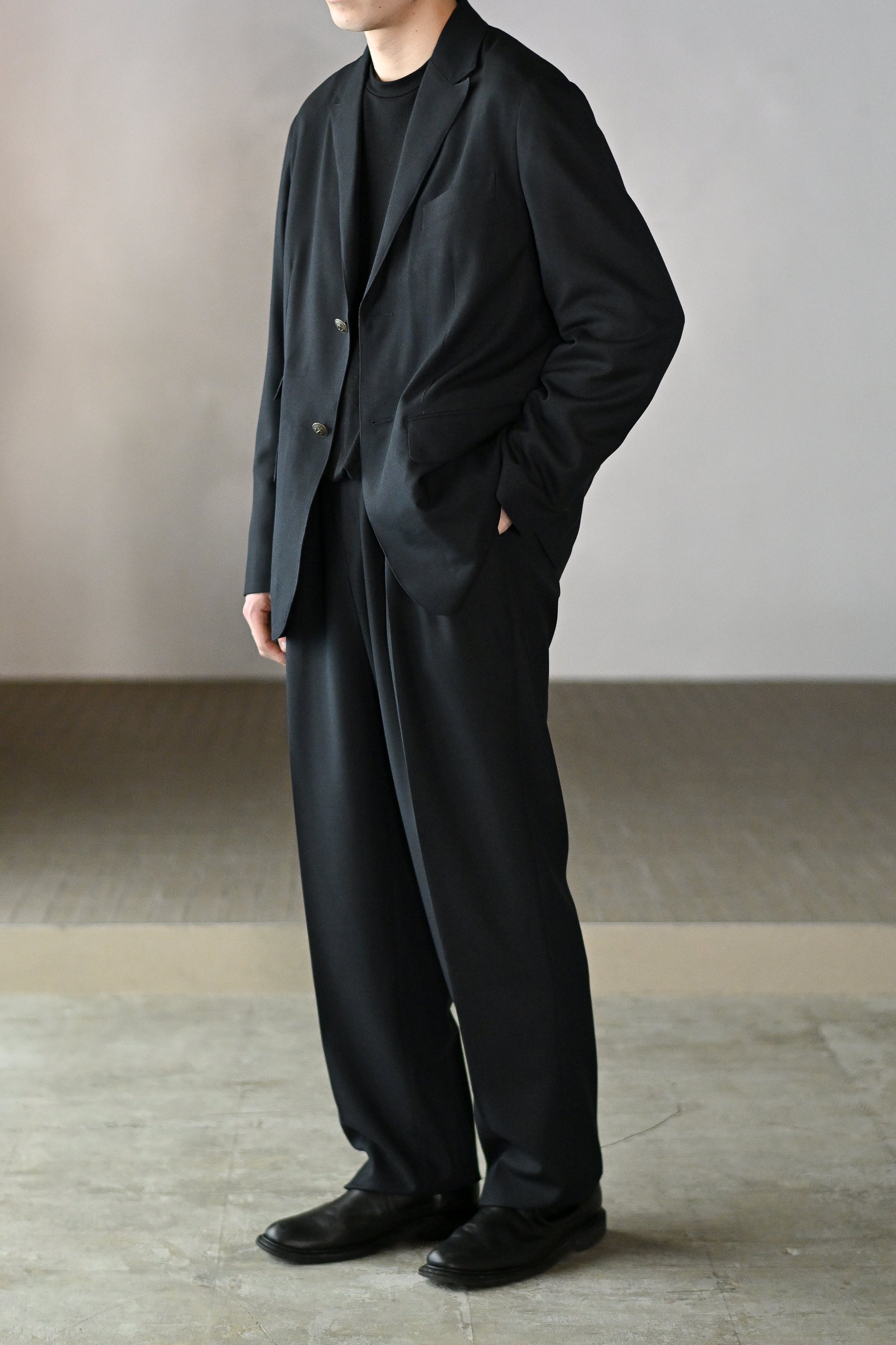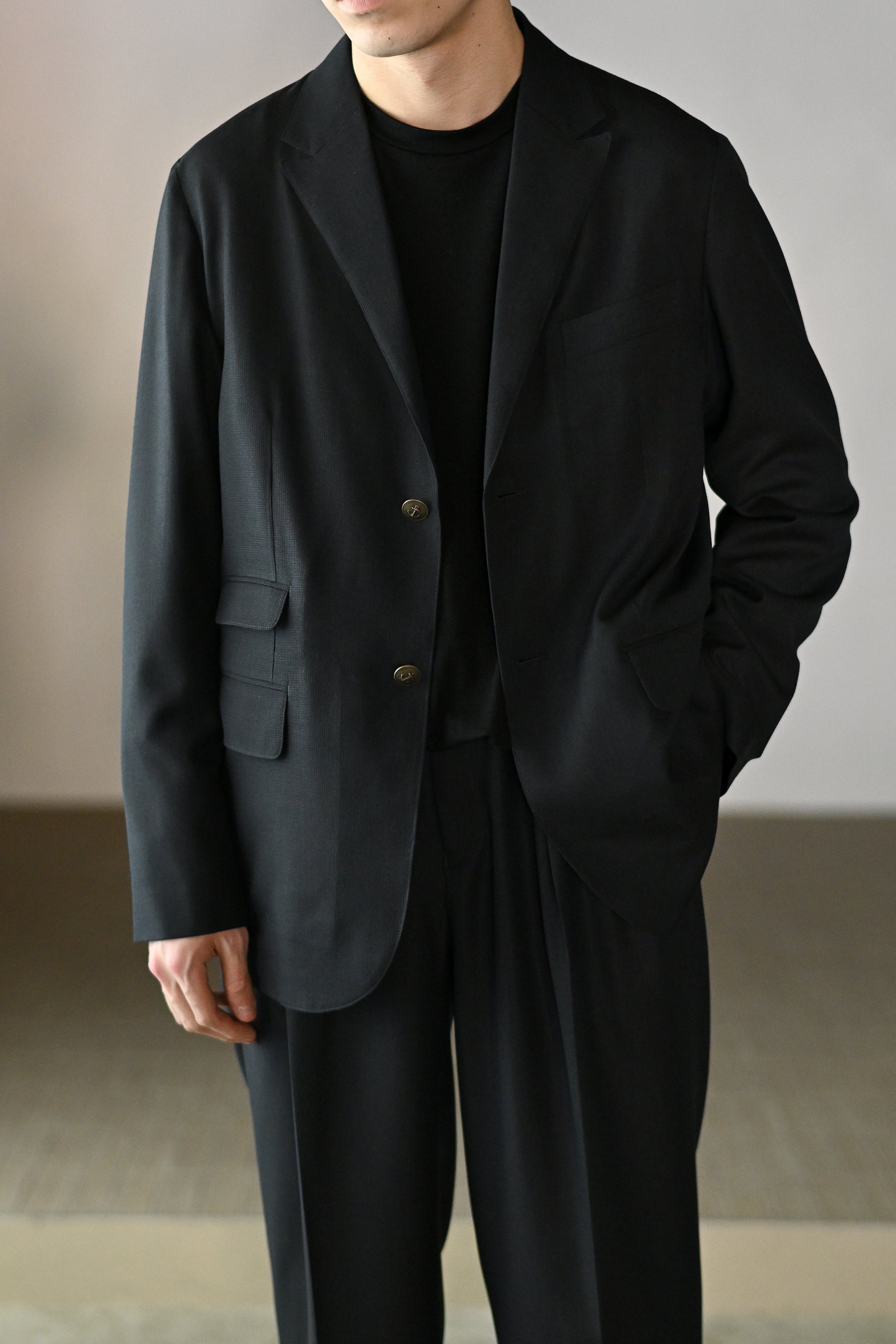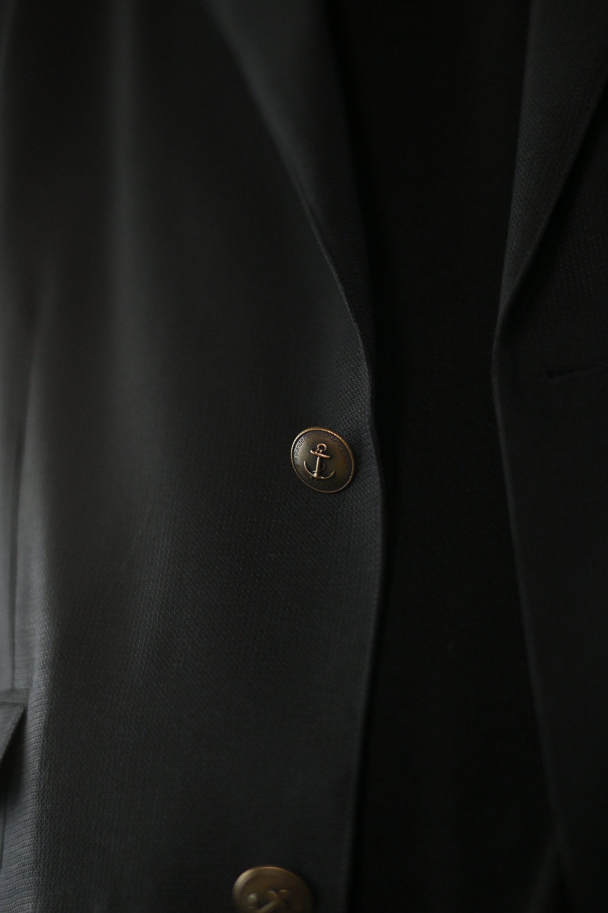 春夏用の紺ブレをイメージし、オリジナルパターンで作られた1着。やや長めな着丈設定と肩回りに余裕を持たせたボックスシルエット。抜け感のあるカジュアルなフィッティングが肩肘はらず着やすく感じて頂ける事と思います。