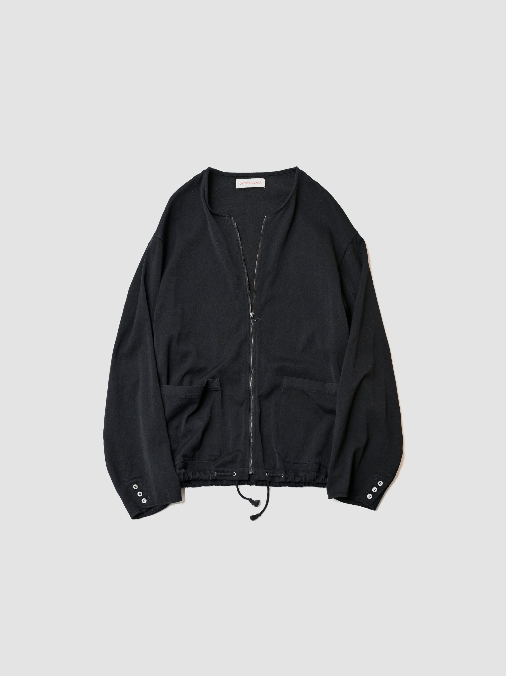 ライナーとテーラー、アクティブスーツの要素を混ぜつつ、随分シックで小綺麗にまとめられた新型ブルゾン。スリーブはワークウェアの様な迫力あるボリューム。肌離れ良いシルクネップのざらっとしたタッチを内側に、照りの柔らかい制服の様なウールサテンがフェイス。